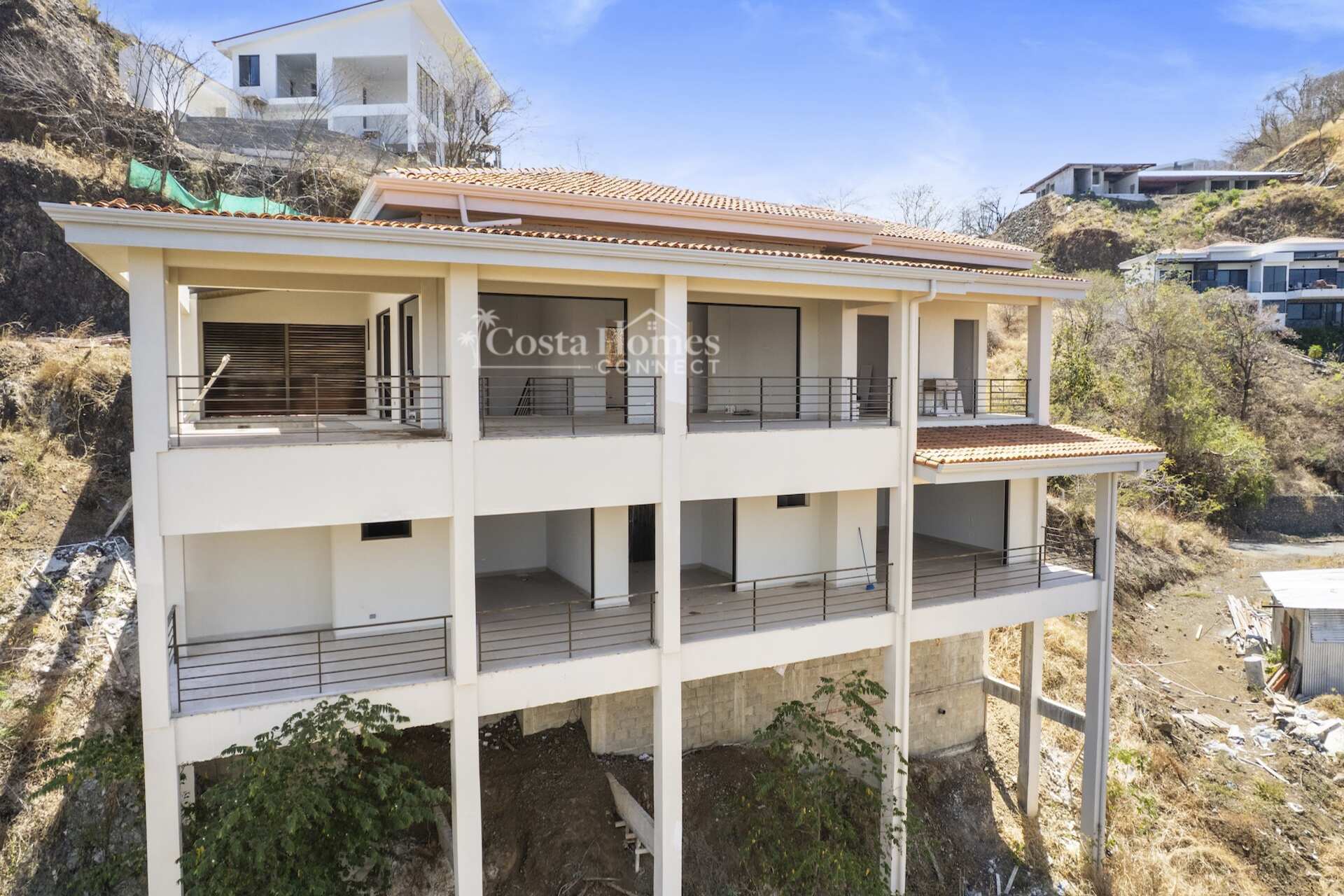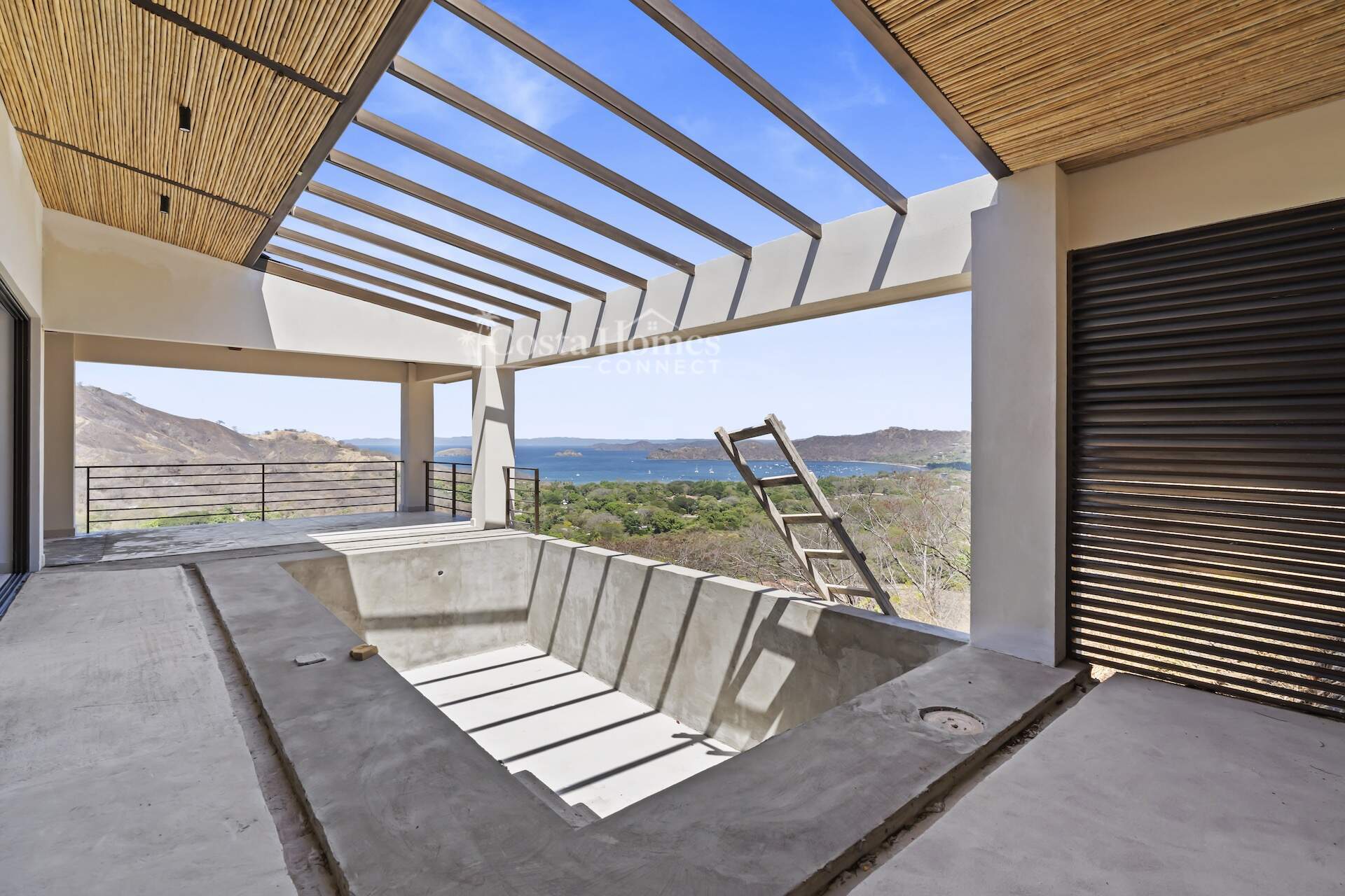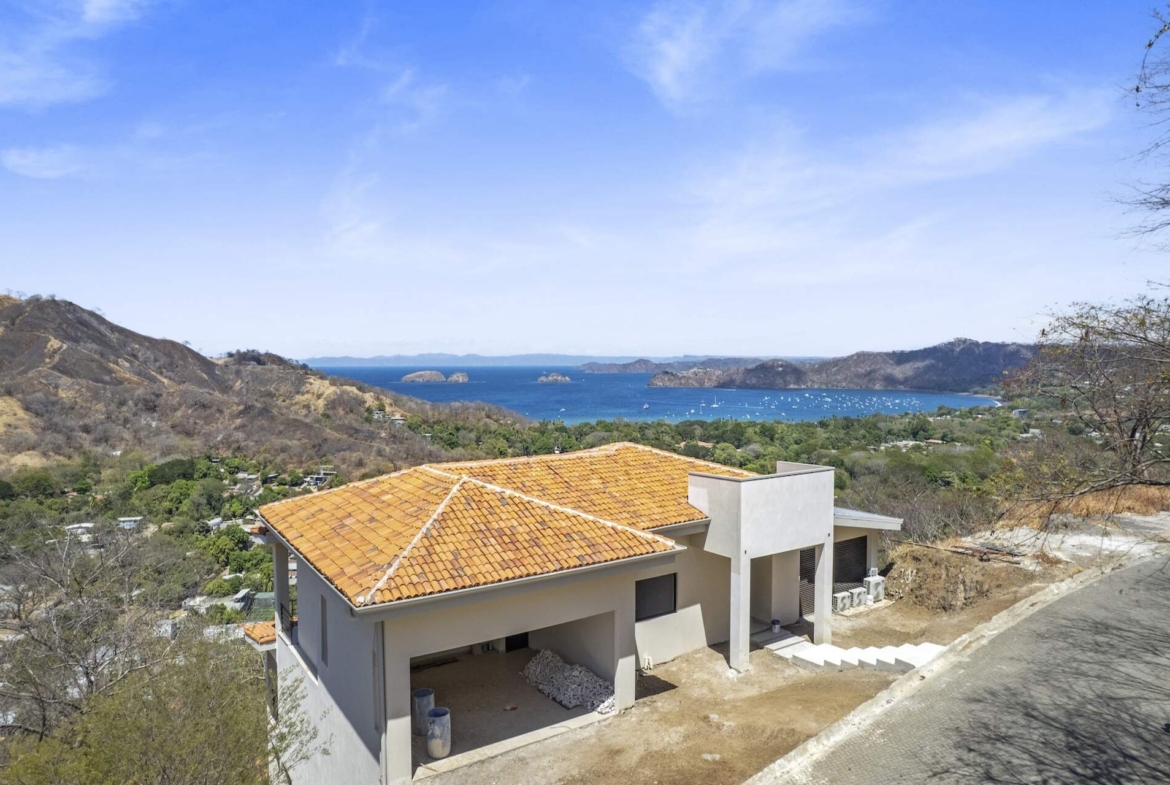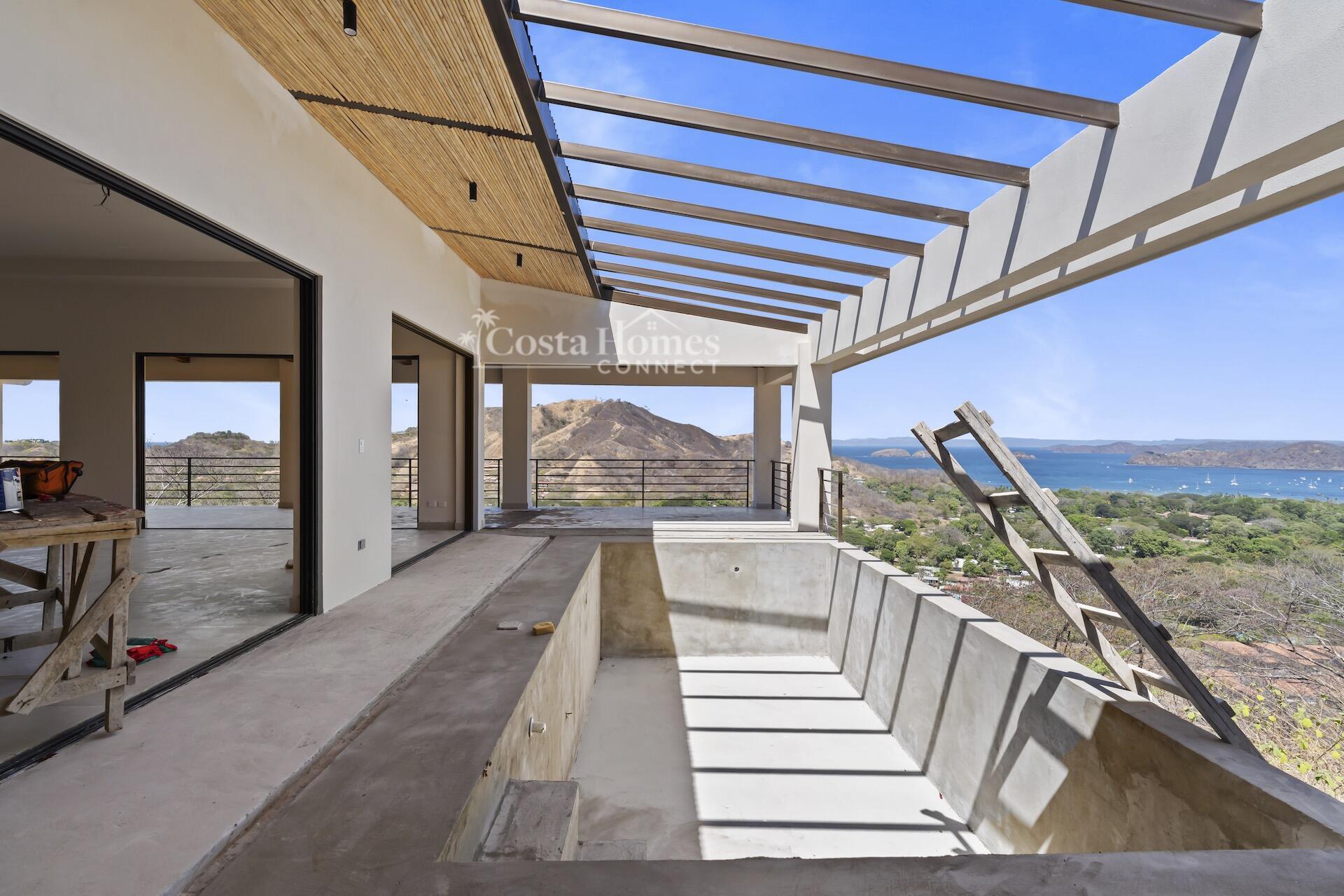 Move in upon completion to this expansive ocean view estate overlooking Playas del Coco, ideally positioned within the prestigious community of Coco Bay Estates. Encompassing 5,650 total square feet including the oversized attached garage, terraces, and pool, this impressive two-level residence is the first of only six exclusive homes in the private Bay View Estates enclave. Enter on the upper level where a light-filled great room seamlessly blends the kitchen, living, and dining areas, accompanied by a spacious bedroom suite with ensuite bath; sliding doors open to a spectacular wraparound pool terrace designed to capture sweeping ocean views and refreshing coastal breezes. The lower level is dedicated to a luxurious main suite and two additional guest bedrooms, each with private ensuite bathrooms and direct access to an expansive terrace that spans the length of the home, creating effortless indoor-outdoor living throughout. Planned with upscale finishes and custom cabinetry, the home will reflect refined tropical elegance while offering generous proportions ideal for entertaining or relaxing in privacy.