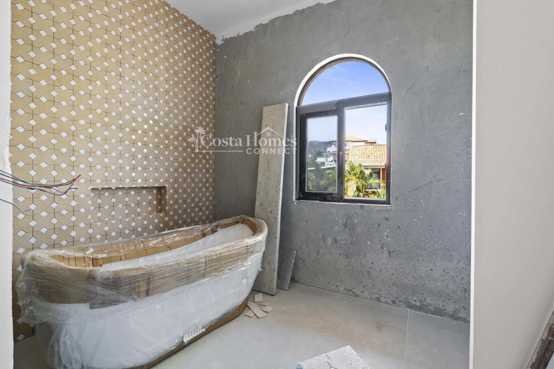 Discover refined coastal living in this brand-new 5-bedroom, 5.5-bath luxury residence offering 3,432 SF of air-conditioned space and 5,036 total SF including expansive terraces and a two-car attached garage. Designed for seamless indoor-outdoor living, the main level features a spacious great room where the gourmet kitchen, dining, and living areas flow effortlessly onto a large covered pool terrace complete with an infinity-edge pool, separate jacuzzi, and the BBQ and wet bar zone—ideal for entertaining in style. This level also includes a powder room, laundry room, secure off-street storage for jet skis or other toys, and a stand-alone guest suite with private entrance and en-suite bathroom overlooking a tranquil internal garden terrace. Upstairs, four additional bedrooms each offer ensuite bathrooms, including two ocean-view suites with private terraces—one boasting a generous walk-in closet—capturing the beauty of Costa Rica’s Pacific coastline.