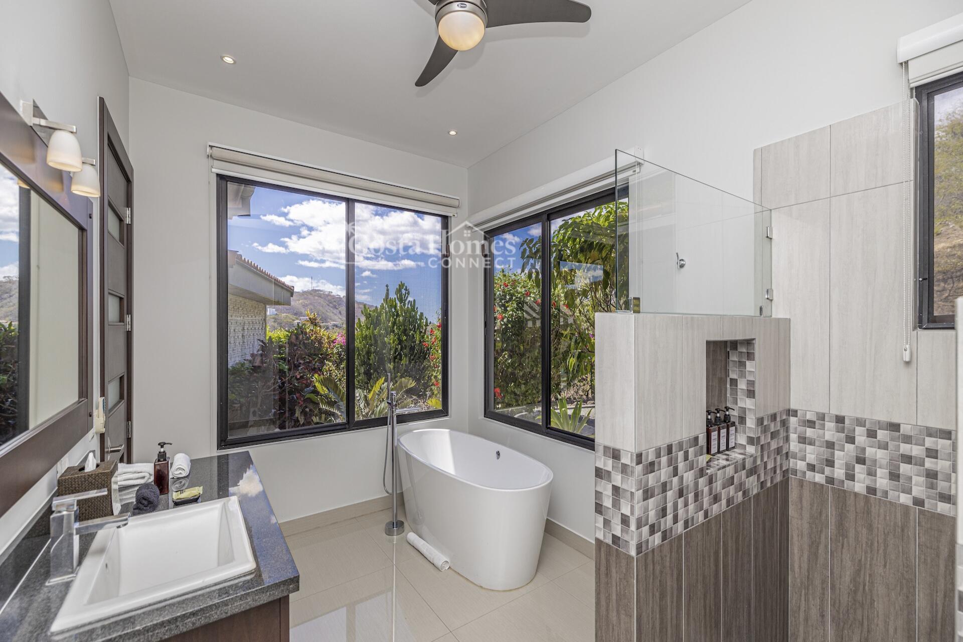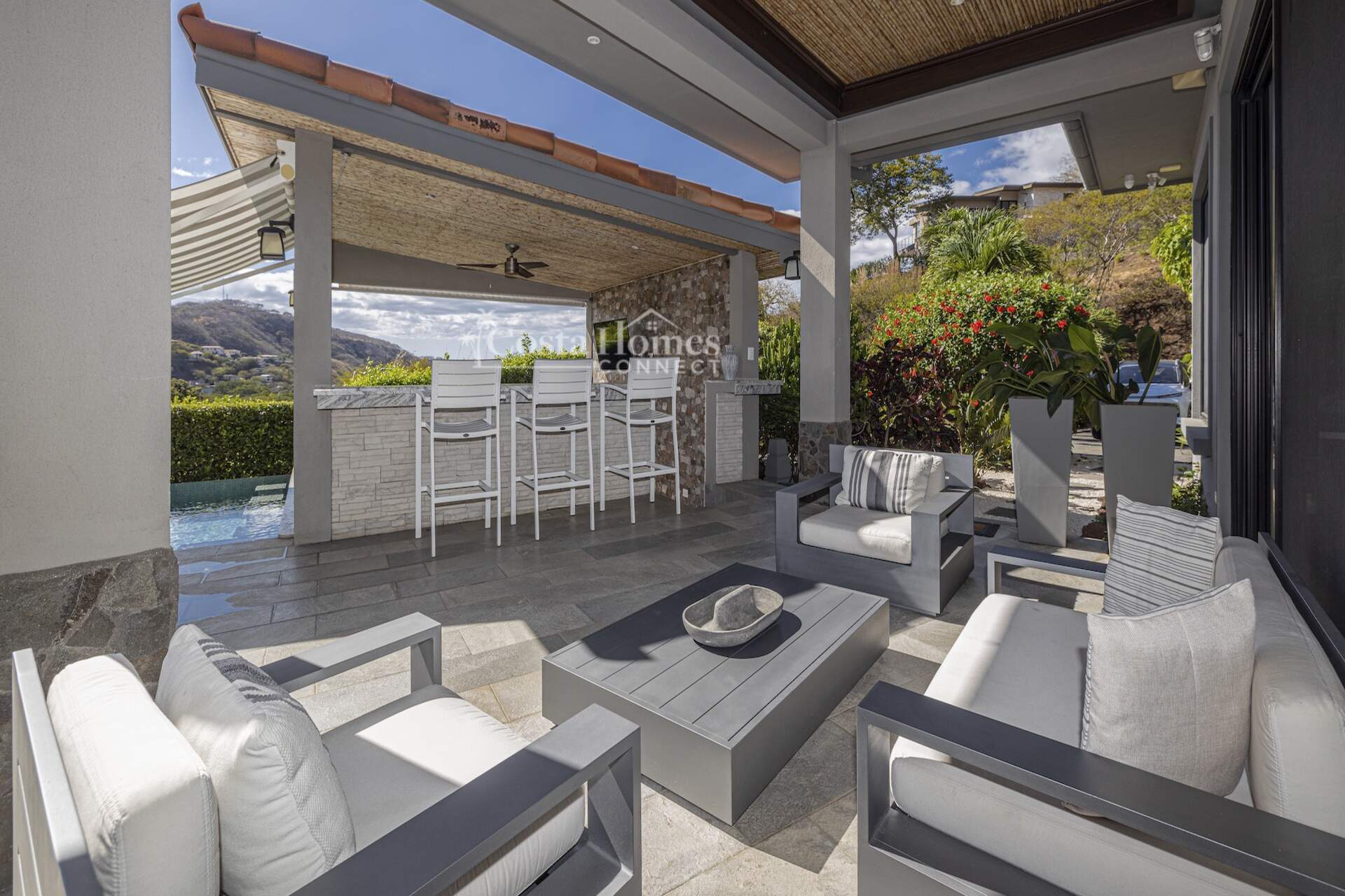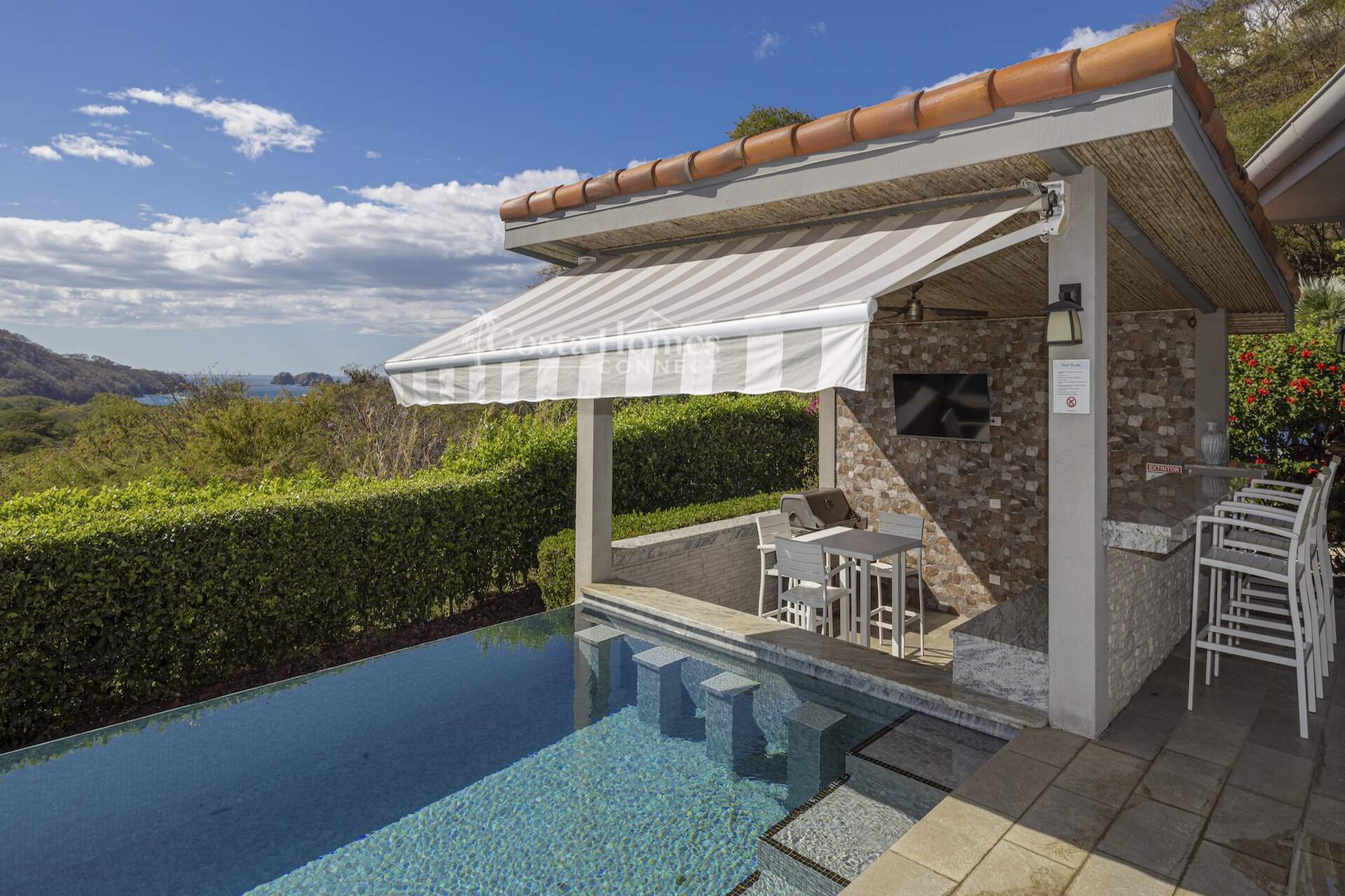 Ocean View Estate Property with 6 Bedrooms and 5 Bathrooms inside Coveted Monte Bello. Move right in to this unique ocean view estate home inside the coveted Monte Bello development in Playa Hermosa, Guanacaste. The property measures over half an acre (2,390 square meters) and consists of a 4 Bedroom, 4 Bathroom, 4,200 square foot main house and an 1,100 square foot guest home and attached two car garage all on one level.