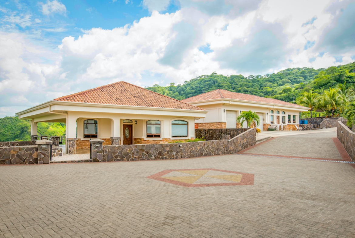This ocean view villa is located in a compound overlooking Plays Del Coco and the Gulf of Papagayo. The main home offers 5 bedrooms and 5 bathrooms, movie/entertainment room, a one bedroom guest villa and a caretakers apartment. A garage offering 5 car storage, outdoor kitchen and bar, covered terrace. Bathroom, shower and a pool with a Jacuzzi with waterfall.