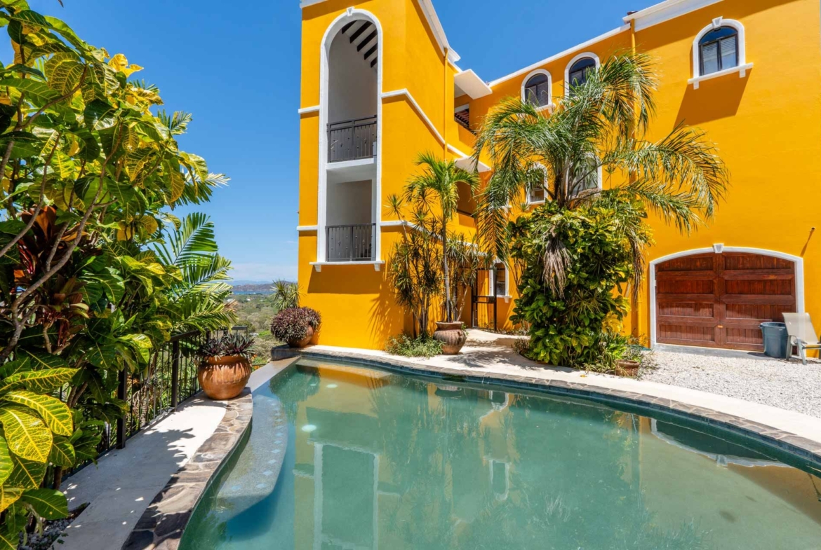 Coco Cliffs Condominium is located on the east ridge of Playa Del Coco with commanding views of the Bahia Coco, the Santa Rosa National Park, as well as the mountains surrounding Playas del Coco. This condo is the ideal spot to sit back, relax, and delight in the spectacular ocean views. Enjoy a spacious 1,722 square foot single level floor plan with 3 bedrooms, 2 full bathrooms and a private garage. The main bedroom features a private balcony and en-suite bath with a jacuzzi tub and an outdoor shower. The living room and dining room open up onto a covered ocean view terrace.