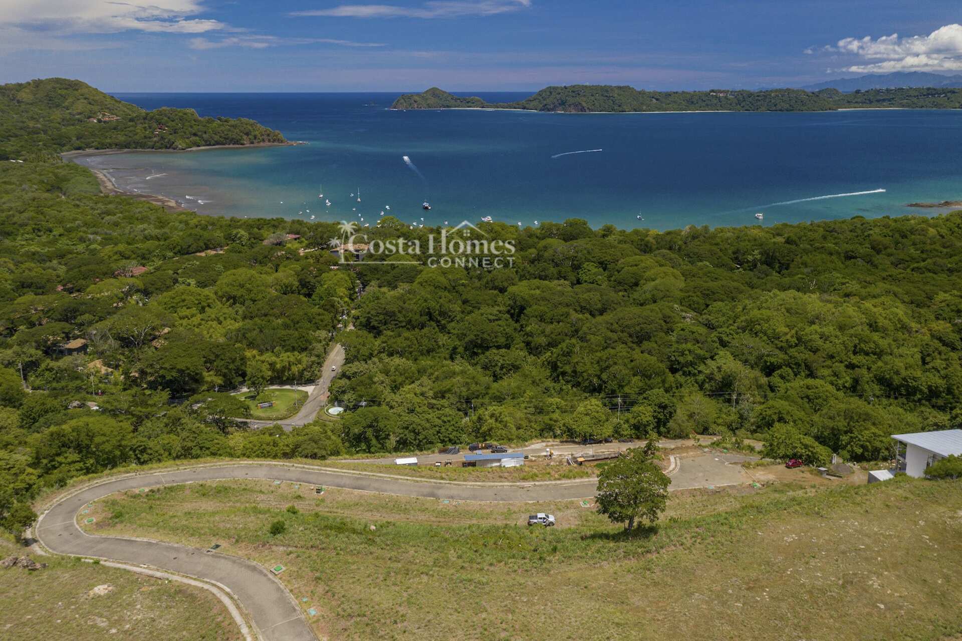 Perched on the ridges above Playa Panamá, this 1,194-square-meter luxury homesite offers spectacular panoramic views of Bahía Culebra and the Peninsula Papagayo, where breathtaking sunsets over the Pacific meet serene mountain view sunrises. With all infrastructure in place and an amply sized, ready-to-build pad requiring minimal site preparation, this lot is an ideal canvas for your dream residence. Located within the exclusive Hacienda del Mar community, residents enjoy the perfect balance of privacy and resort-style amenities, including a clubhouse with a two-tier infinity pool, fitness center, tennis and pickleball courts, and on-site dining at the Peninsula Steak & Seafood Restaurant. Additional features include banquet and meeting facilities, as well as a future private beach club, currently home to the oceanfront Hacienda Blu Restaurant & Bar.