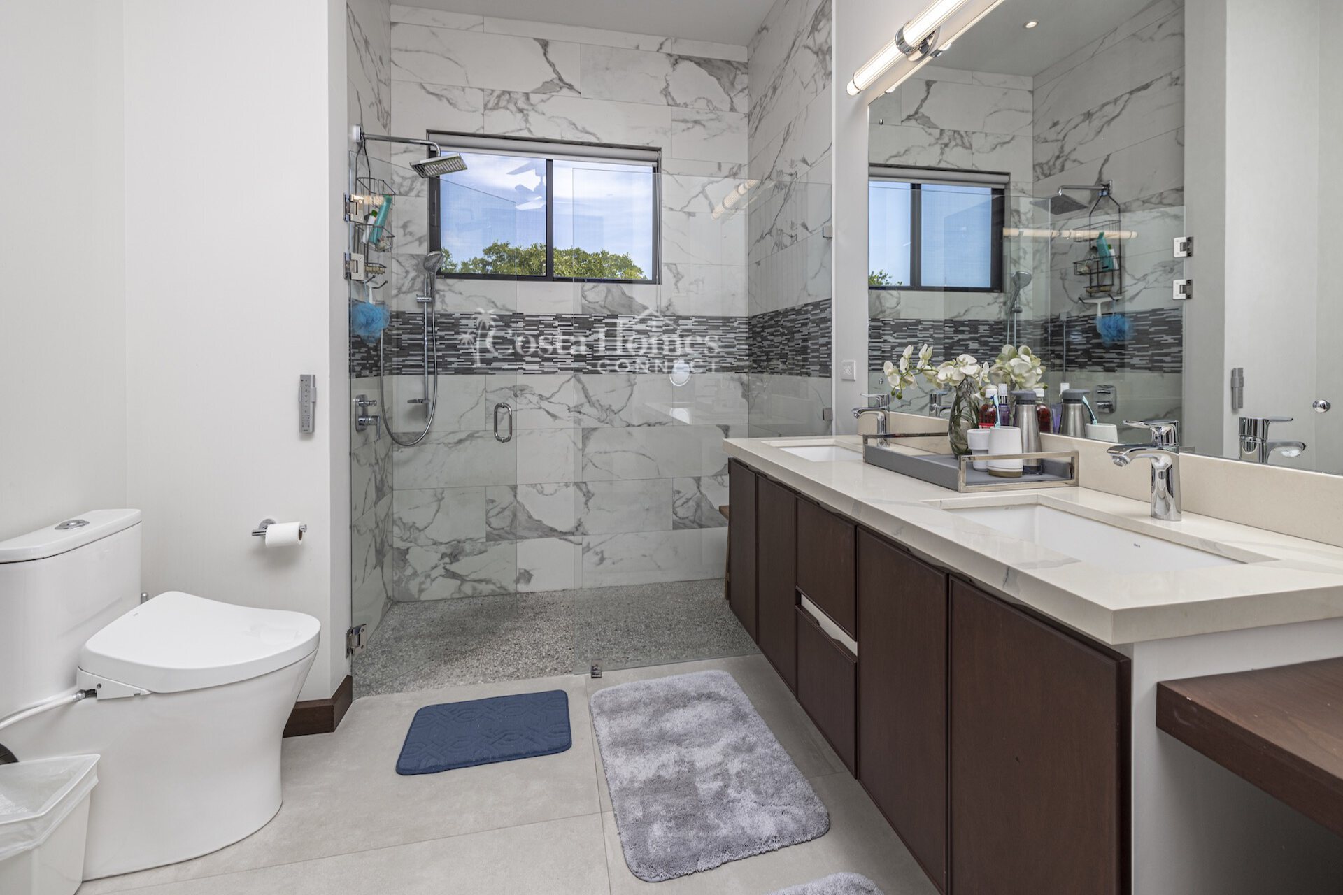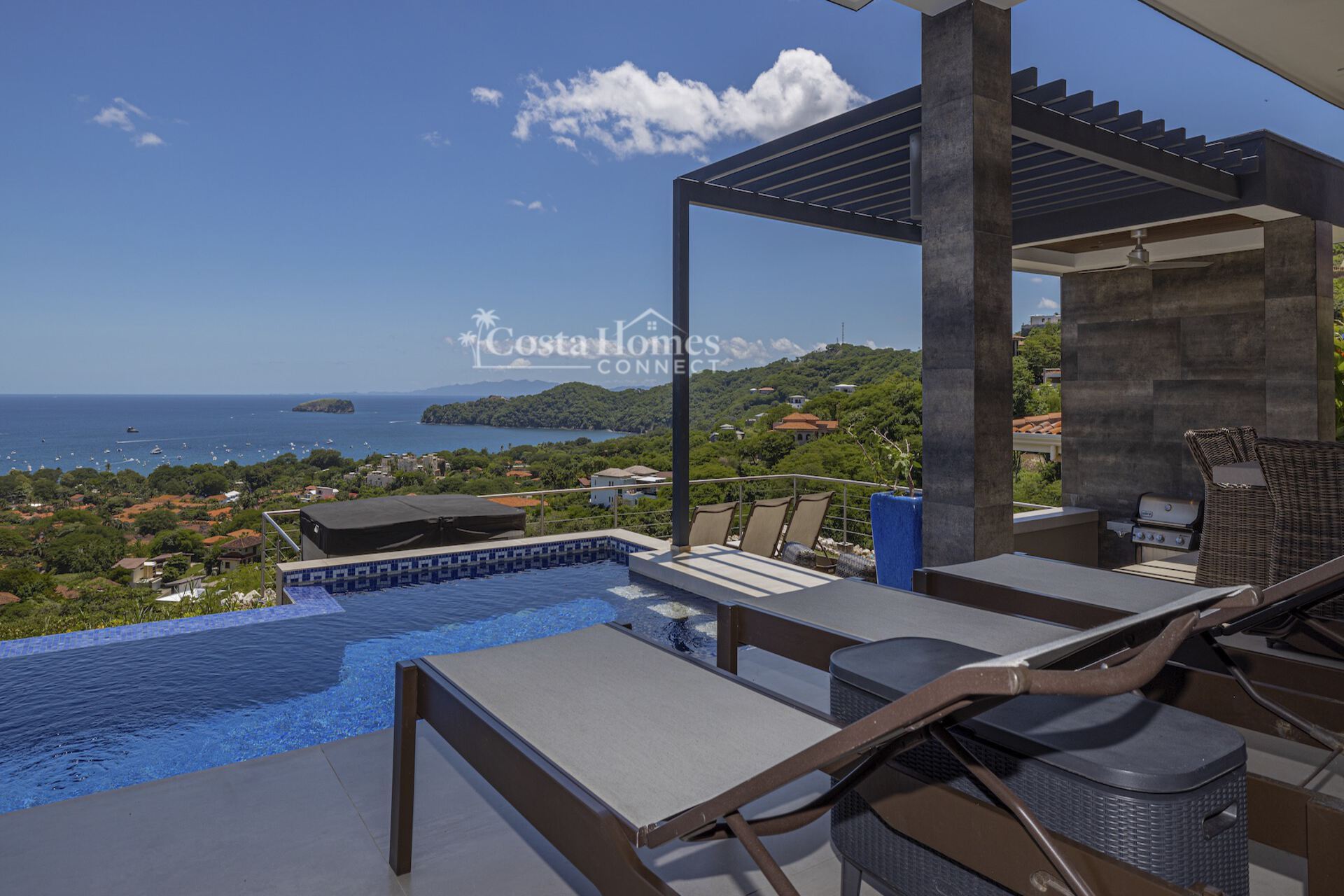 This stunning luxury ocean view residence sits on the top of the ridge overlooking Playas del Coco offering the ultimate in tropical living with 4,913 total square feet and 3,202 square feet of air-conditioned interior space. Featuring 5 bedrooms and 5.5 bathrooms, this home seamlessly blends sophisticated design with the beauty of its natural surroundings.