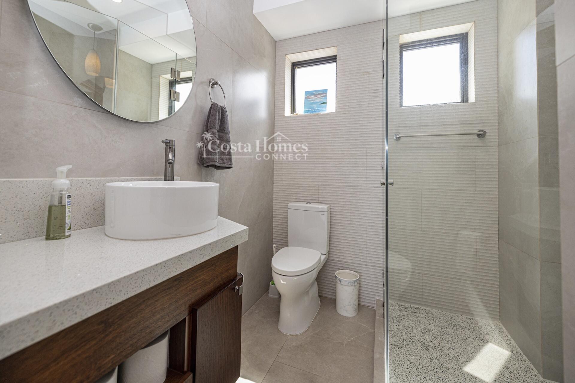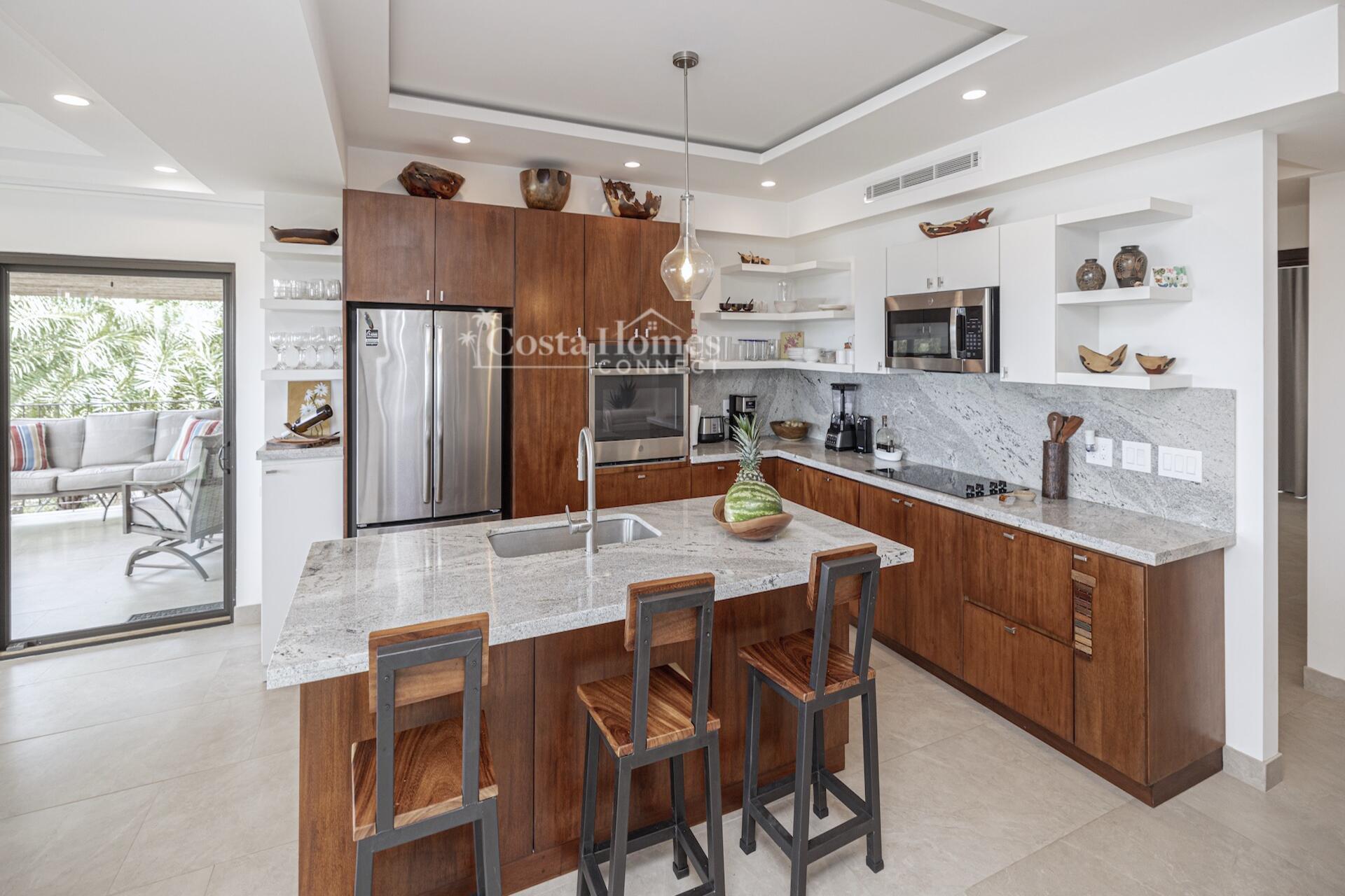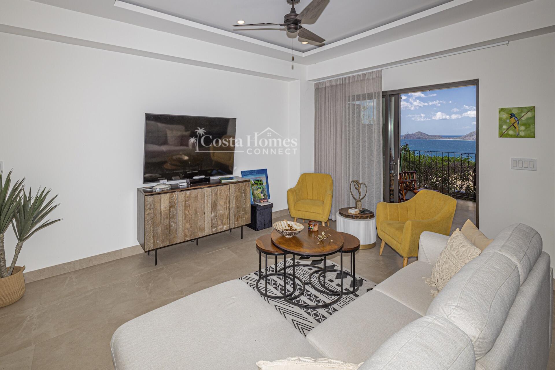 Perched within The Jaguar Village as part of the exclusive Hacienda del Mar community, this refined ocean-view condominium delivers effortless one-level luxury with sweeping panoramic views from the kitchen, dining, living areas, and master suite, enhanced by two covered ocean-view terraces—one extending from the living room and the other from the dining area, with additional access from the primary bedroom—creating seamless indoor-outdoor living.