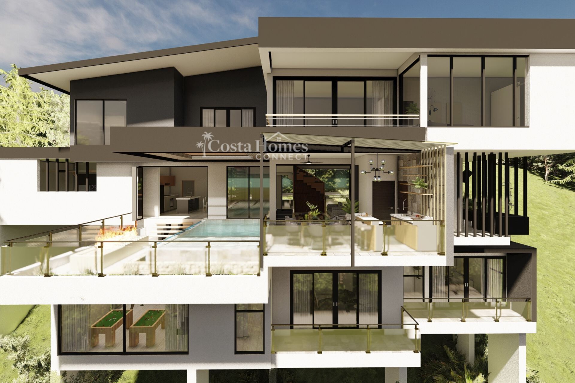 Included in the purchase are fully approved and permitted architectural plans for a stunning 5,724 total square foot multilevel luxury home. The design features 4 spacious bedrooms, each with its own ensuite bathroom and walk-in closet, along with 2 half bathrooms, an outdoor shower, an ocean view pool, expansive terraces, and a 2-car attached garage. The layout also includes a dedicated gym, game room, and office/den.