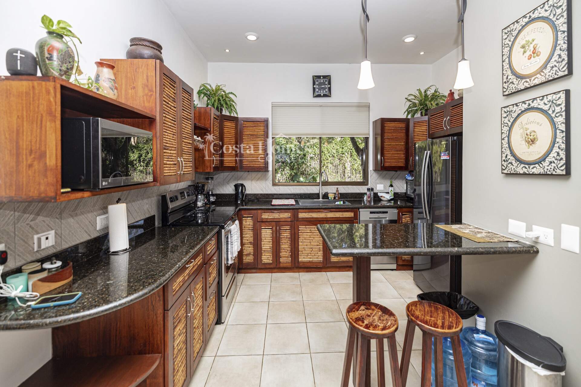 Fully furnished and equipped, the home showcases tile flooring, granite and marble countertops, and stainless steel appliances, all within a secure, fully walled community offering 24-hour security and off-street parking. Perfectly located just 25 minutes from Guanacaste International Airport (LIR) and only minutes from shopping, medical services, restaurants, water sports, outdoor adventures, and Playas del Coco’s lively nightlife, this condo delivers refined coastal living in a serene oasis setting.