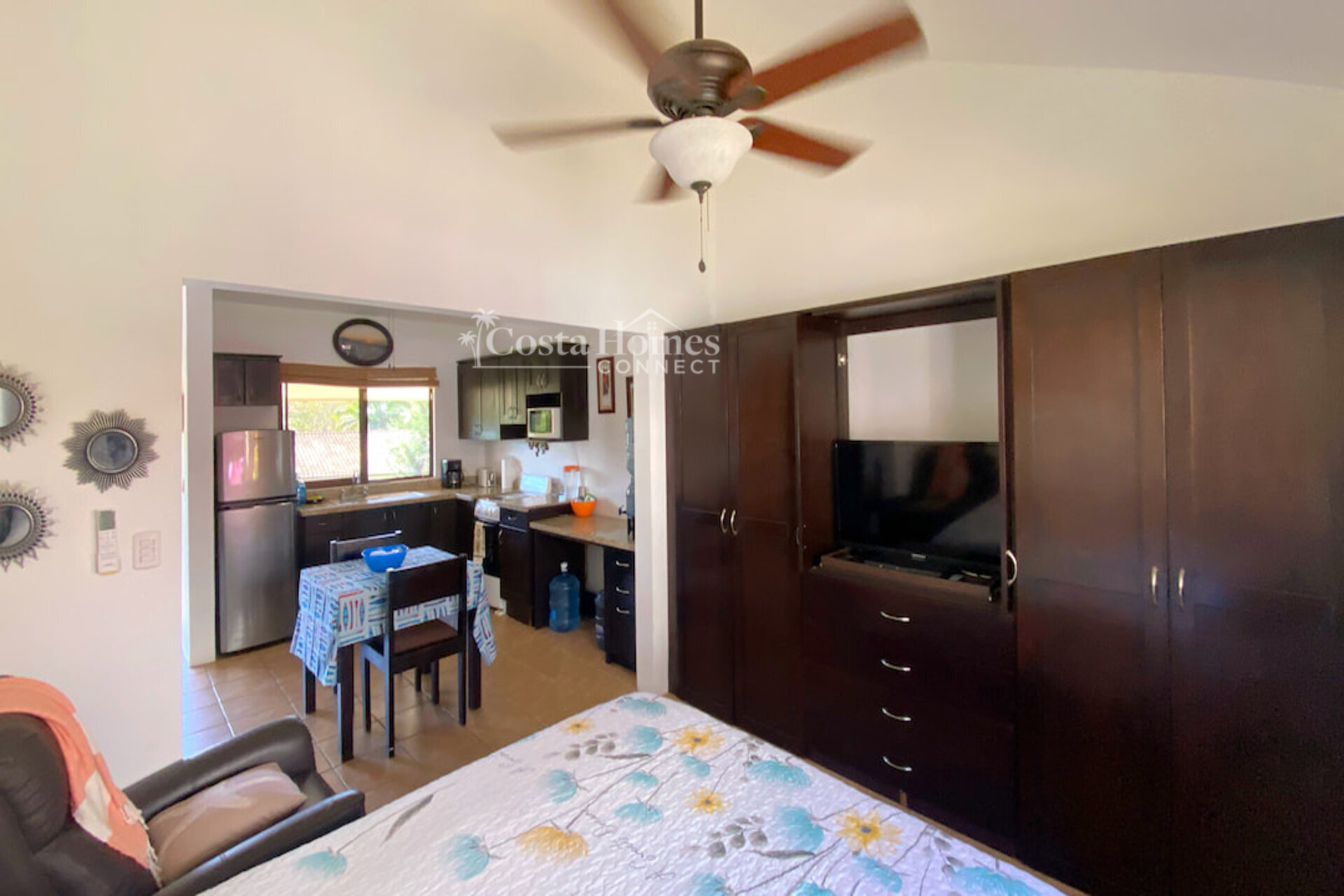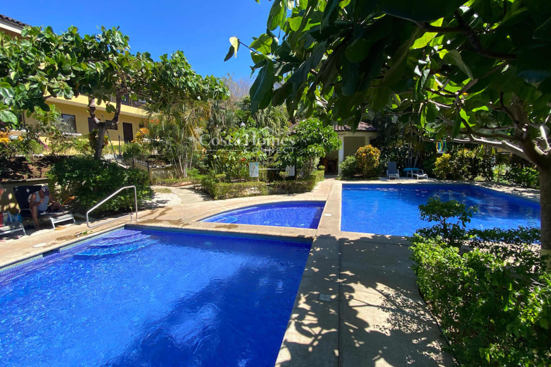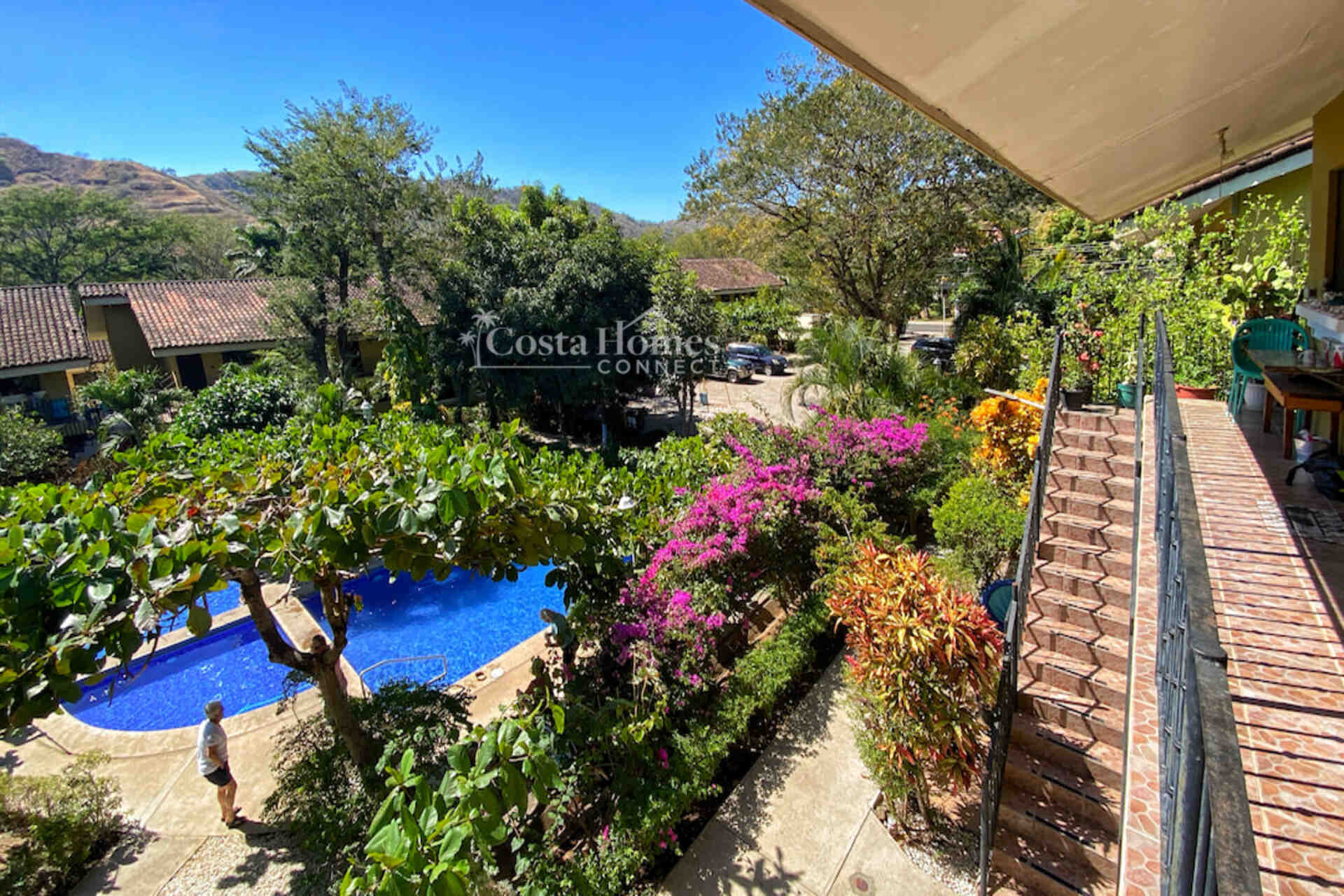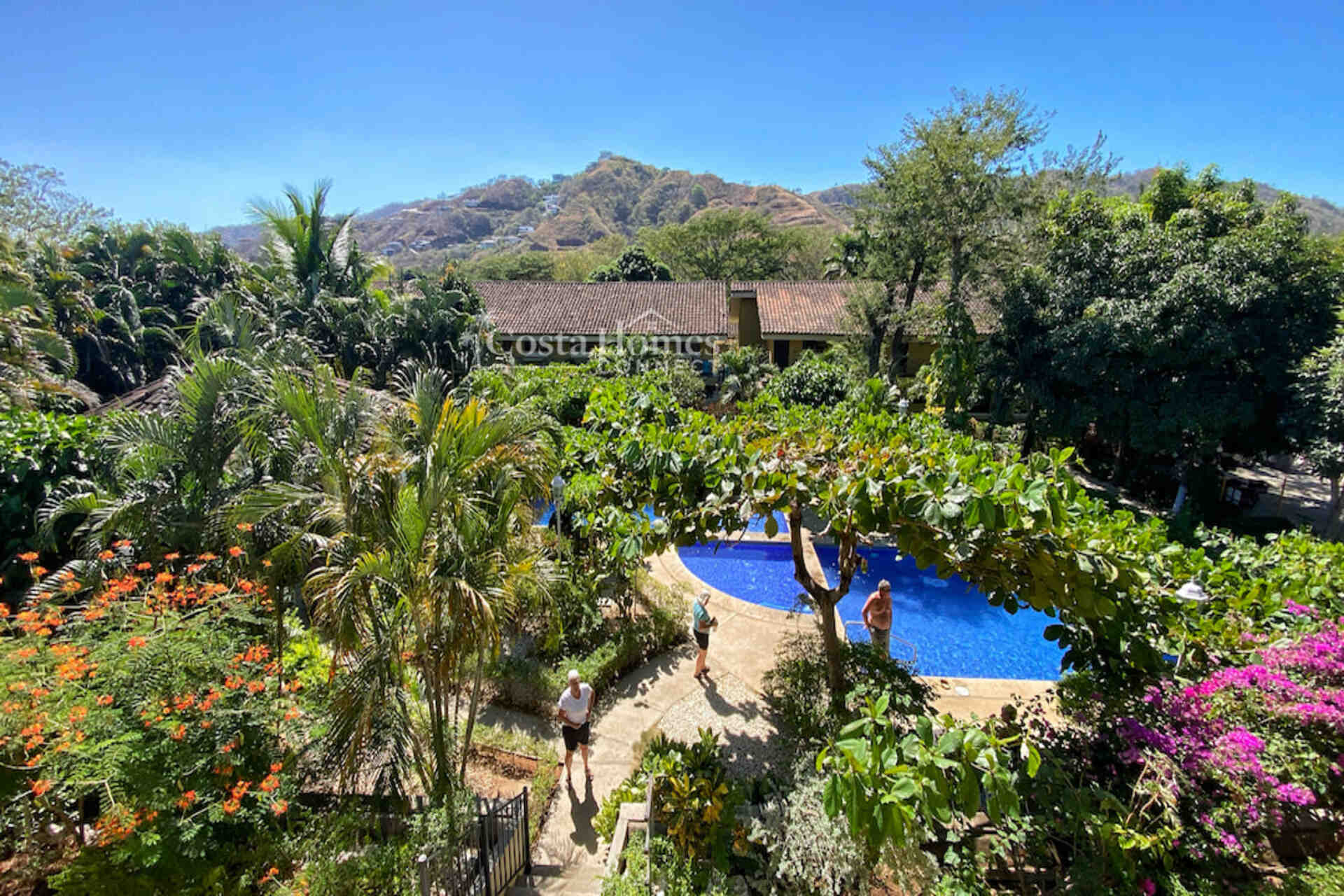Nature views galore from this 2nd floor studio at Sweet Dreams! One of the best locations in this 60 unit development overlooking the pools and lush garden landscaping, with the beautiful hills of Guanacaste as a backdrop. Really nice!