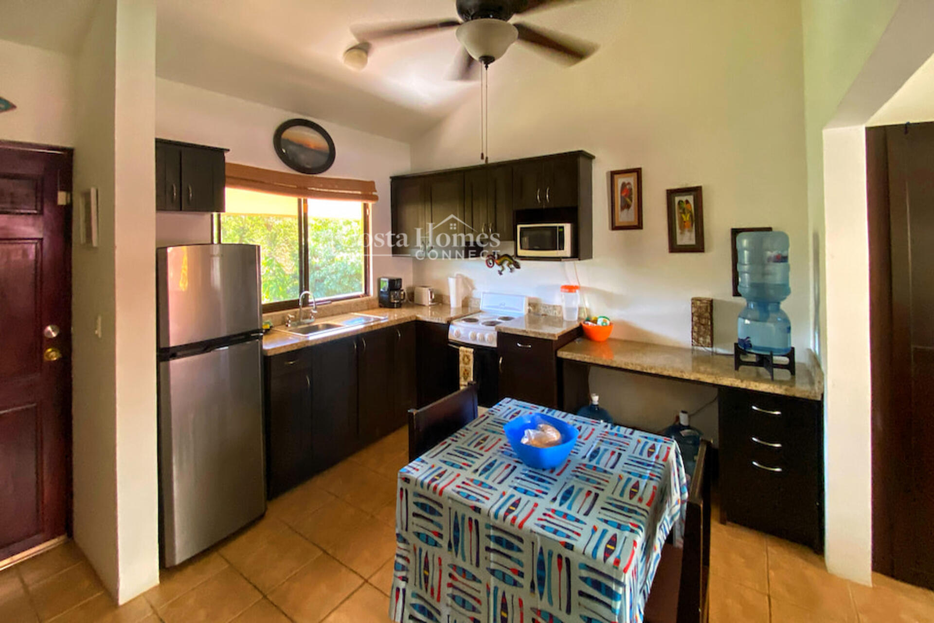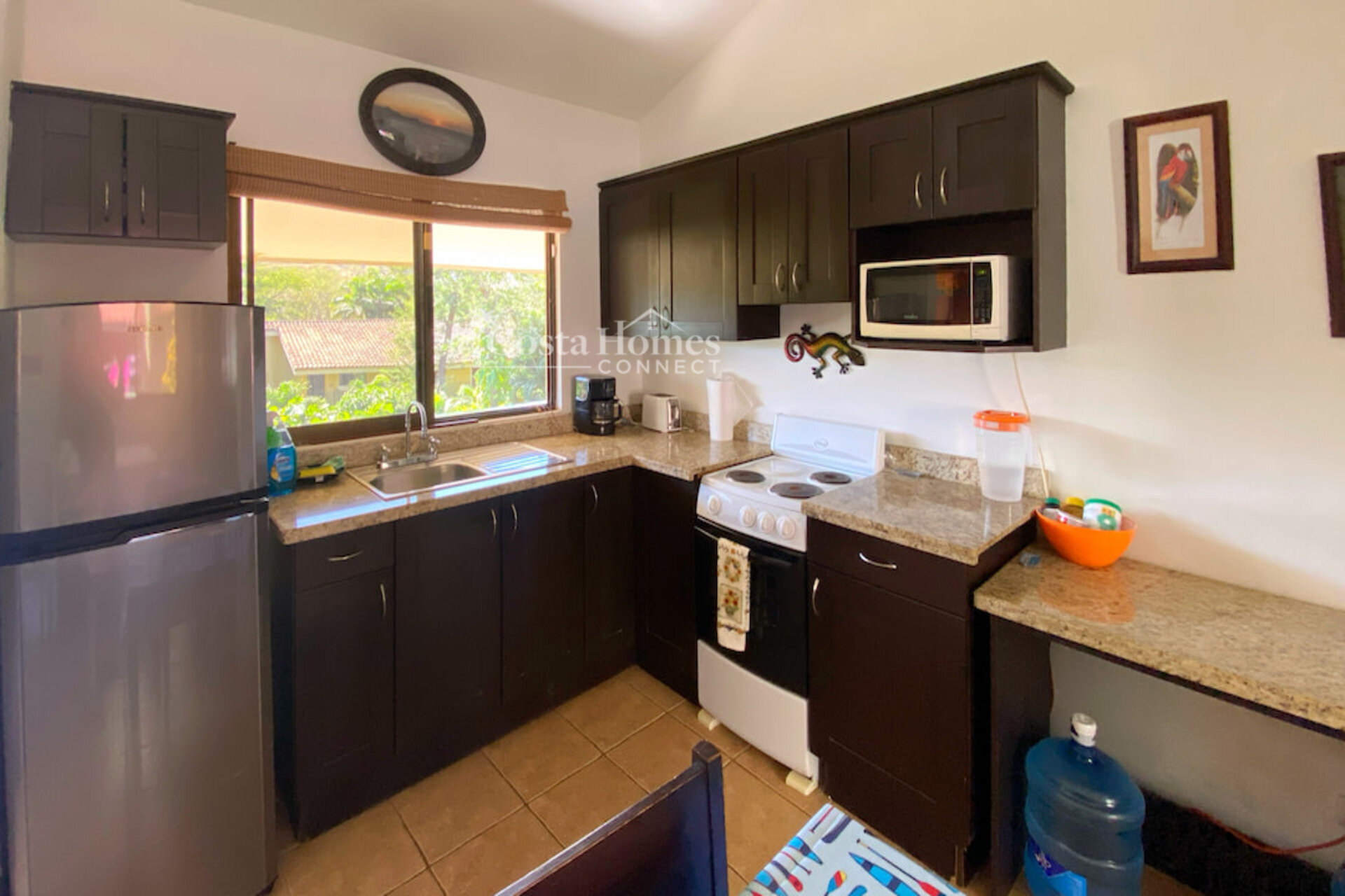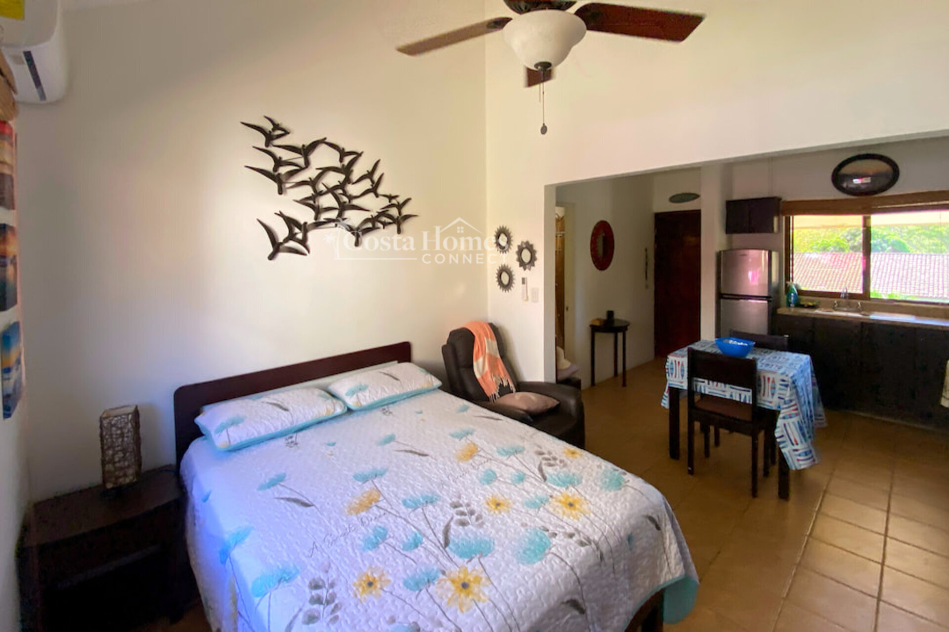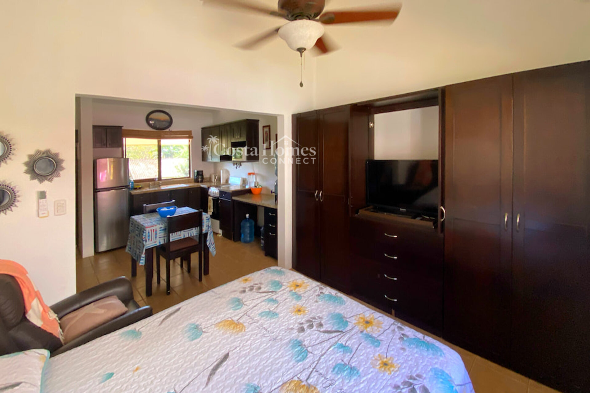 Nature views galore from this 2nd floor studio at Sweet Dreams! One of the best locations in this 60 unit development overlooking the pools and lush garden landscaping, with the beautiful hills of Guanacaste as a backdrop. Really nice!
