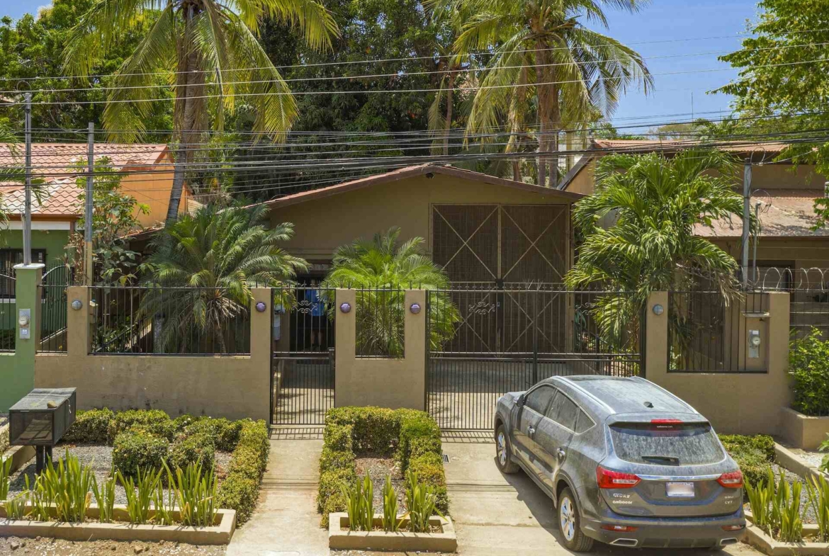 Tucked away in the quiet, up-and-coming Monte Seco residential neighborhood of Playas del Coco, this charming 2 bedroom, 1-bathroom home offers the perfect blend of comfort, functionality, and outdoor living. Situated on a 270 square meter (2,900 SF) lot, the home features 600 SF of air-conditioned interior space and a total of 1,050 SF including a spacious covered backyard terrace. The terrace is ideal for entertaining, with a large dining area, cozy seating zone, BBQ