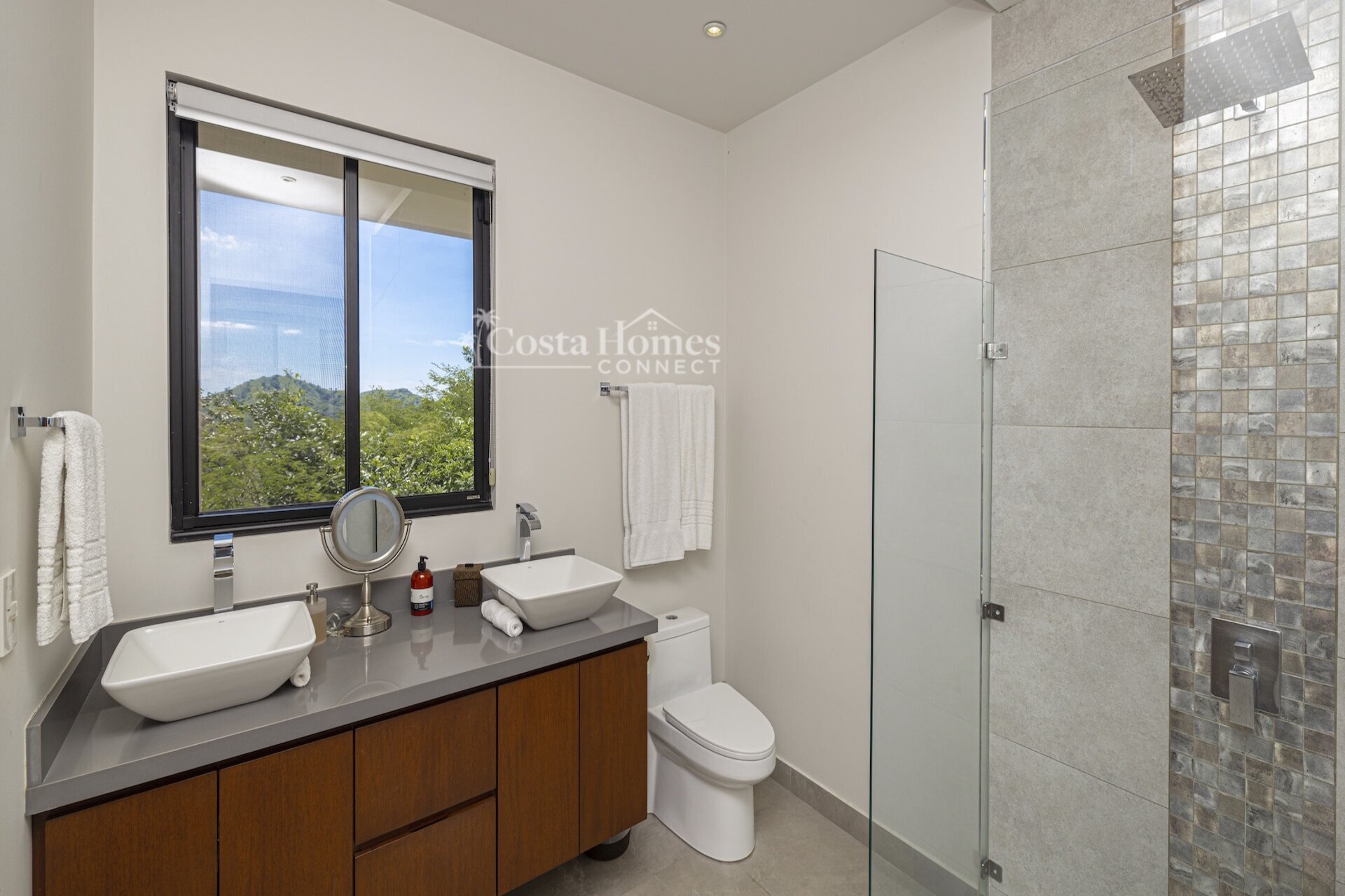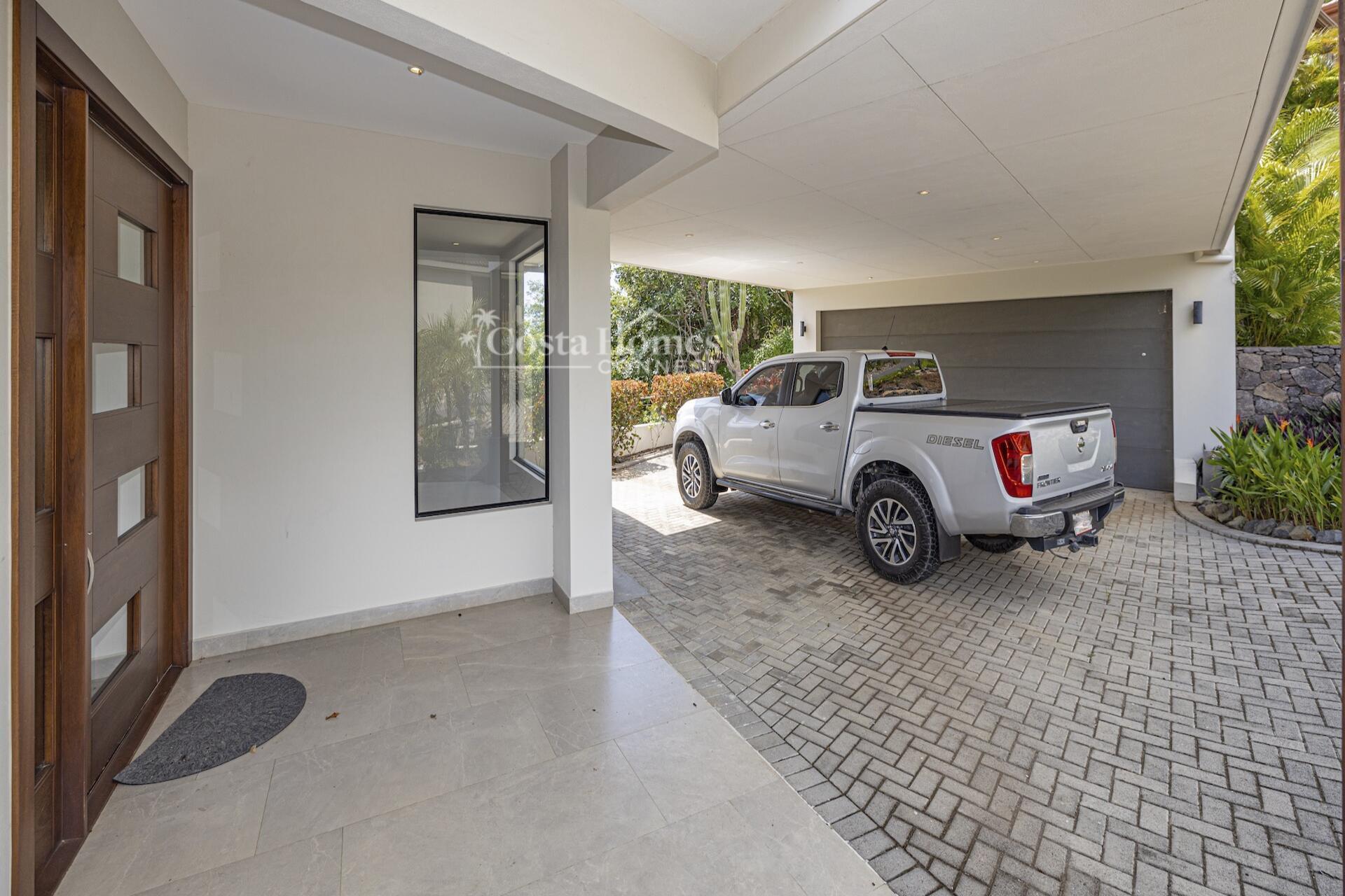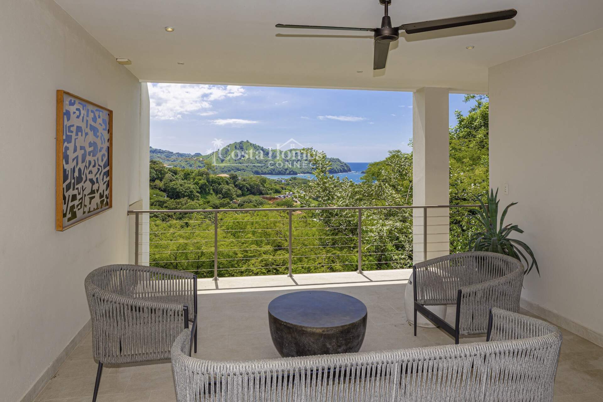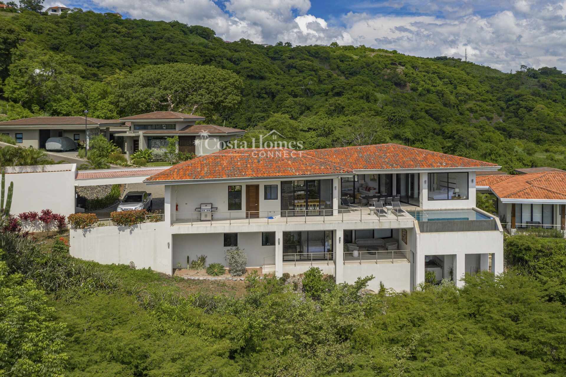 The main floor showcases a separate kitchen and an ocean view dining room that flows into a spacious living room, where panoramic views extend across the ocean and the lush forest behind. From here, glass doors open onto a covered terrace and infinity-edge pool, complete with outdoor dining, sunbathing and shaded lounging areas, and a BBQ zone—perfect for entertaining or relaxing in style. The lower level offers two additional master suites that share a large covered terrace, as well as a private 1-bedroom apartment with its own entrance, ideal for hosting guests or generating rental income. Enjoying sweeping views over Playas del Coco, this contemporary home offers 2,652 square feet of interior living space, with a total of 4,490 square feet including covered terraces and a detached 2-car garage. Fully furnished and fitted for immediate occupancy, it is built to the highest standards with upscale finishes, fixtures, and materials.