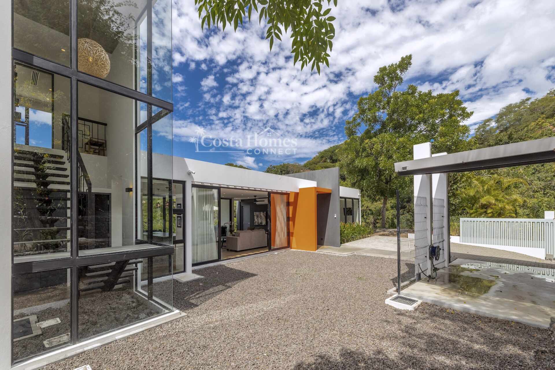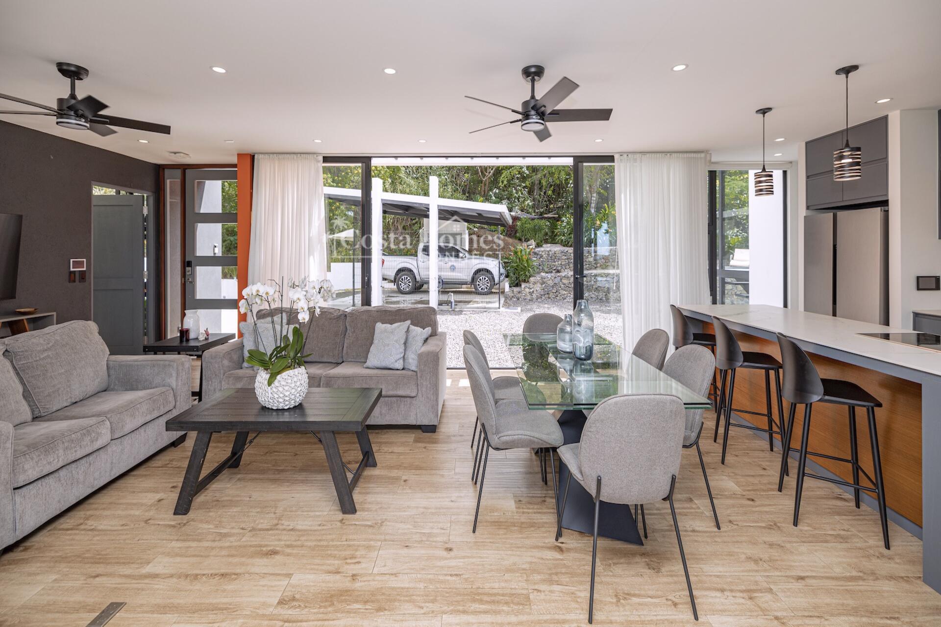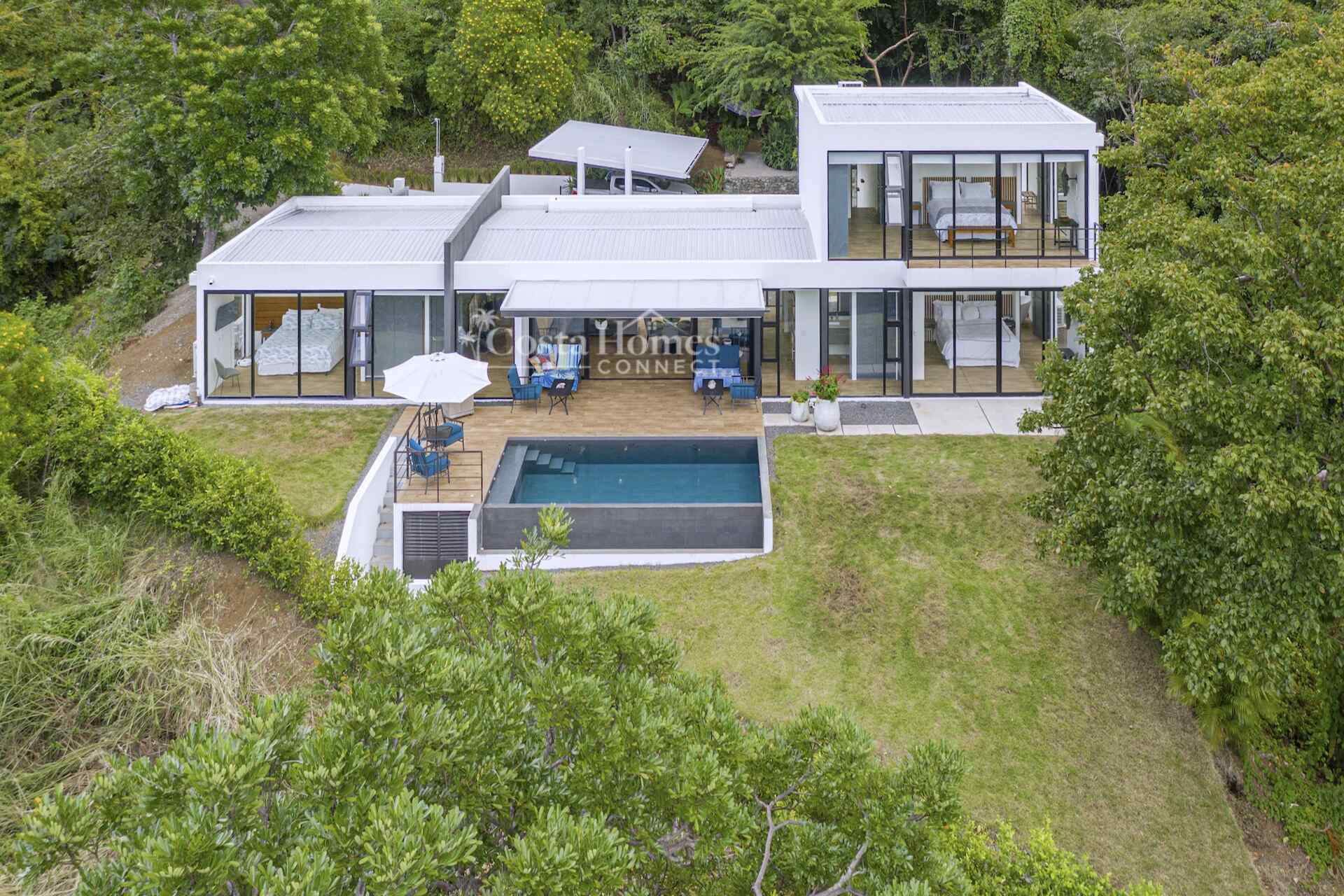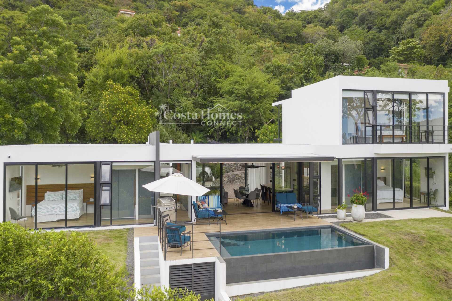 This stunning modern masterpiece offers luxurious indoor–outdoor living, beautiful ocean views, and exceptional privacy within the prestigious low-density gated community of Palo Alto, just a short walk to the Blue Flag shores of Playa Hermosa. Situated on a 1,035m² lot and spanning 2,600 square feet, this fully furnished 4-bed, 4.5-bath contemporary residence features an entertainer’s main level with an expansive open-concept living, dining, and chef’s kitchen area framed by floor-to-ceiling windows and sliding glass doors that open to ocean-view terraces, private gardens, and an inviting infinity pool overlooking Playa Hermosa and the Gulf of Papagayo.