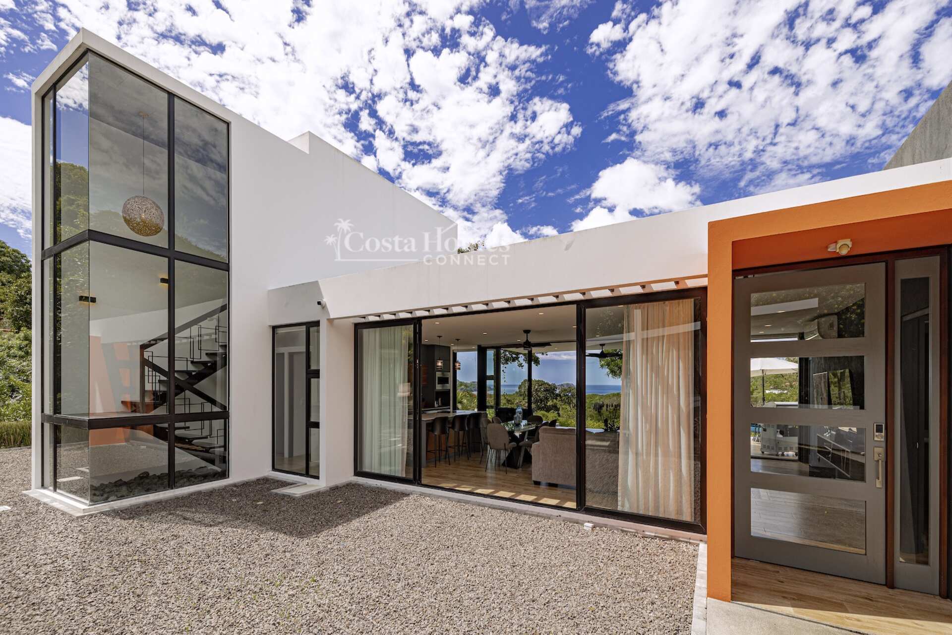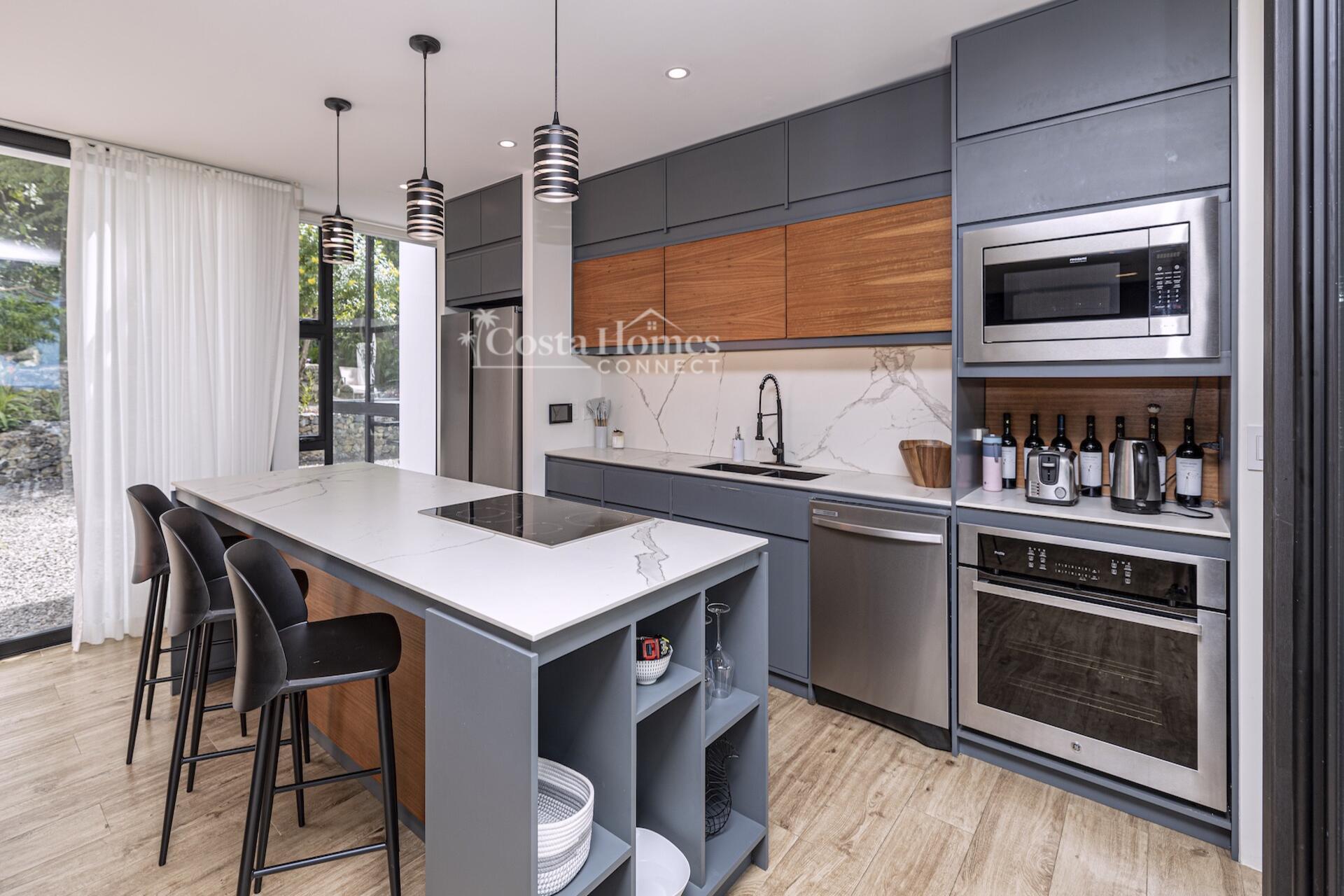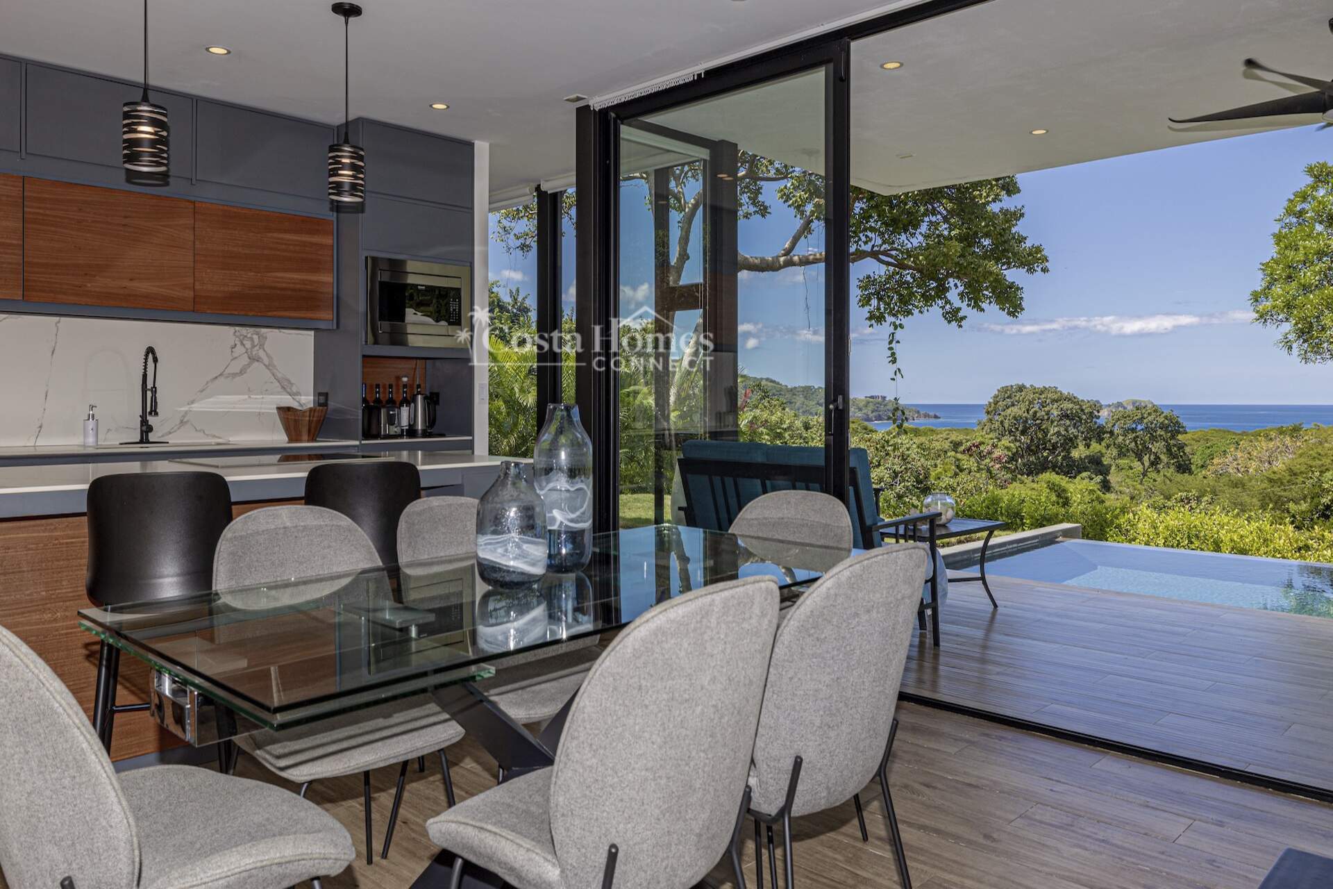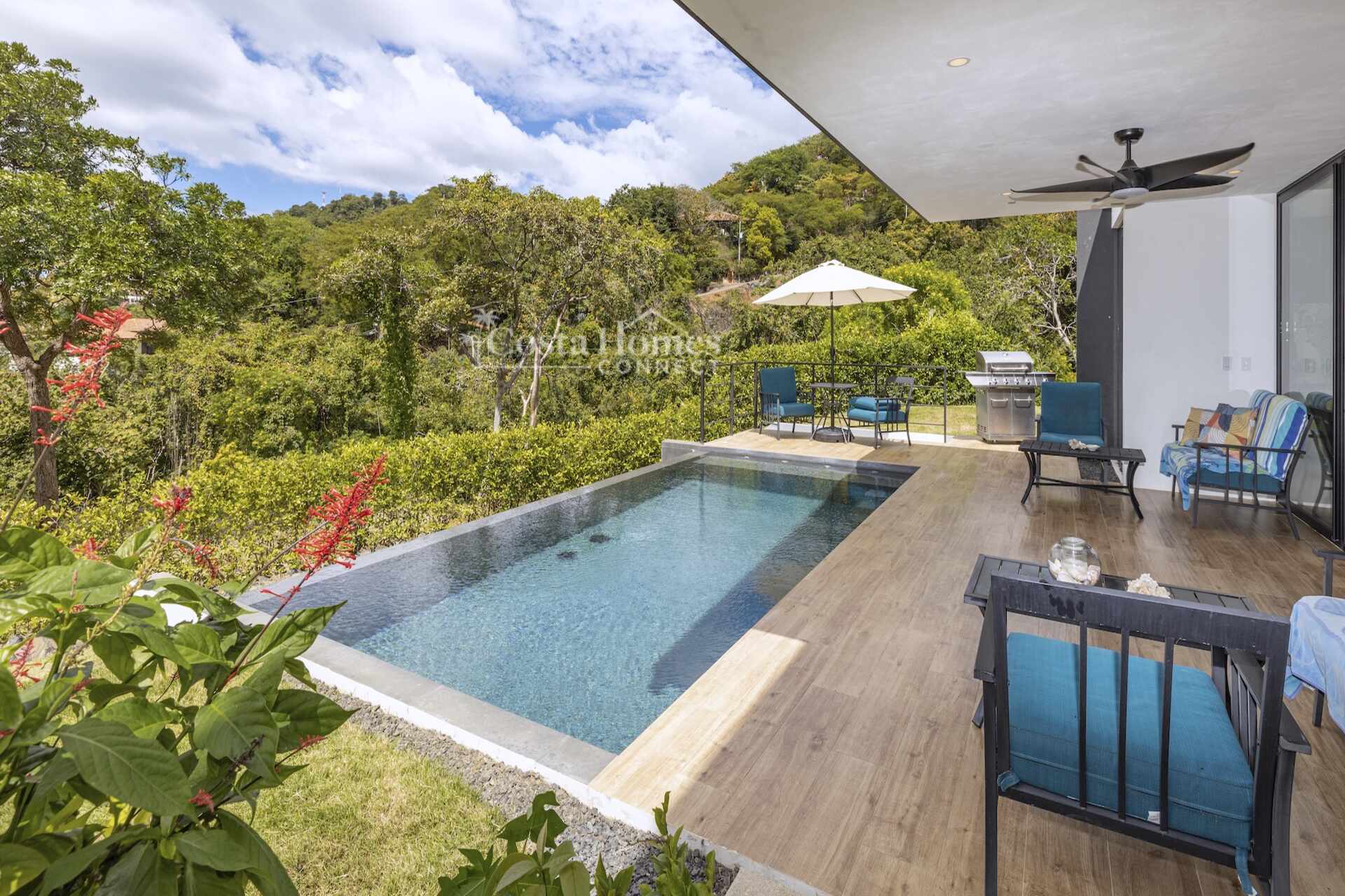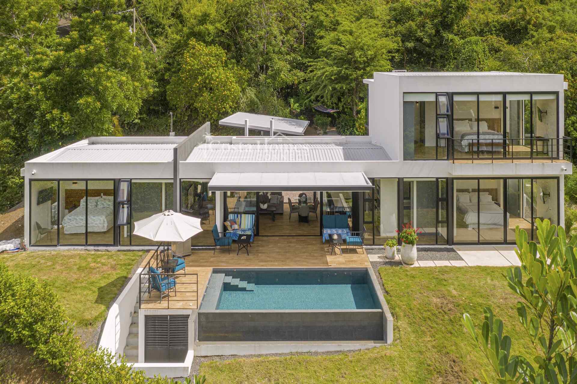 This stunning modern masterpiece offers luxurious indoor–outdoor living, beautiful ocean views, and exceptional privacy within the prestigious low-density gated community of Palo Alto, just a short walk to the Blue Flag shores of Playa Hermosa. Situated on a 1,035m² lot and spanning 2,600 square feet, this fully furnished 4-bed, 4.5-bath contemporary residence features an entertainer’s main level with an expansive open-concept living, dining, and chef’s kitchen area framed by floor-to-ceiling windows and sliding glass doors that open to ocean-view terraces, private gardens, and an inviting infinity pool overlooking Playa Hermosa and the Gulf of Papagayo.