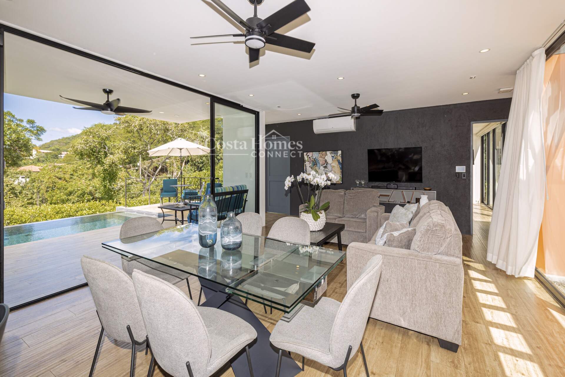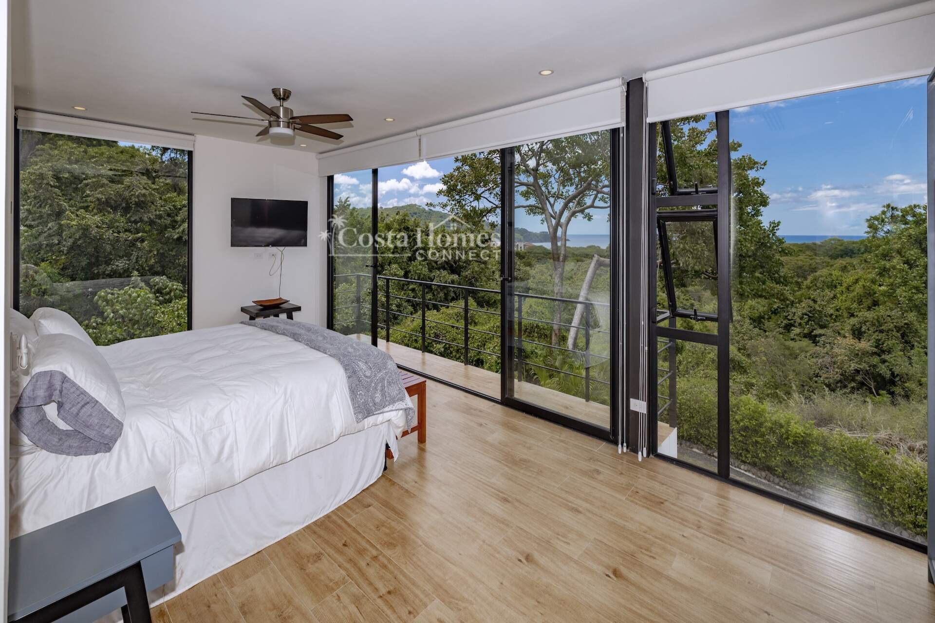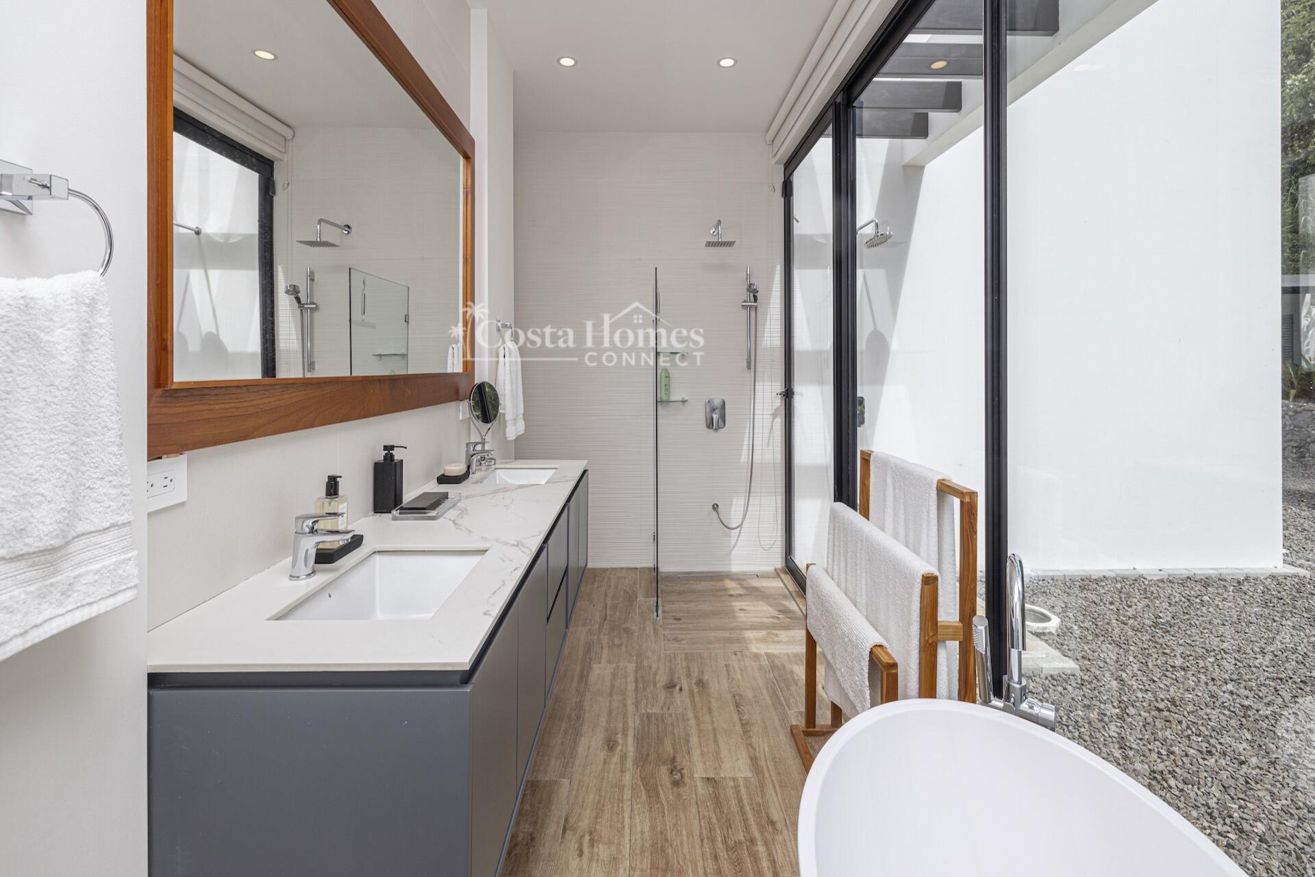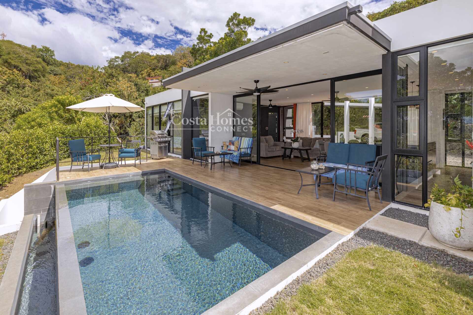 This stunning modern masterpiece offers luxurious indoor–outdoor living, beautiful ocean views, and exceptional privacy within the prestigious low-density gated community of Palo Alto, just a short walk to the Blue Flag shores of Playa Hermosa. Situated on a 1,035m² lot and spanning 2,600 square feet, this fully furnished 4-bed, 4.5-bath contemporary residence features an entertainer’s main level with an expansive open-concept living, dining, and chef’s kitchen area framed by floor-to-ceiling windows and sliding glass doors that open to ocean-view terraces, private gardens, and an inviting infinity pool overlooking Playa Hermosa and the Gulf of Papagayo.