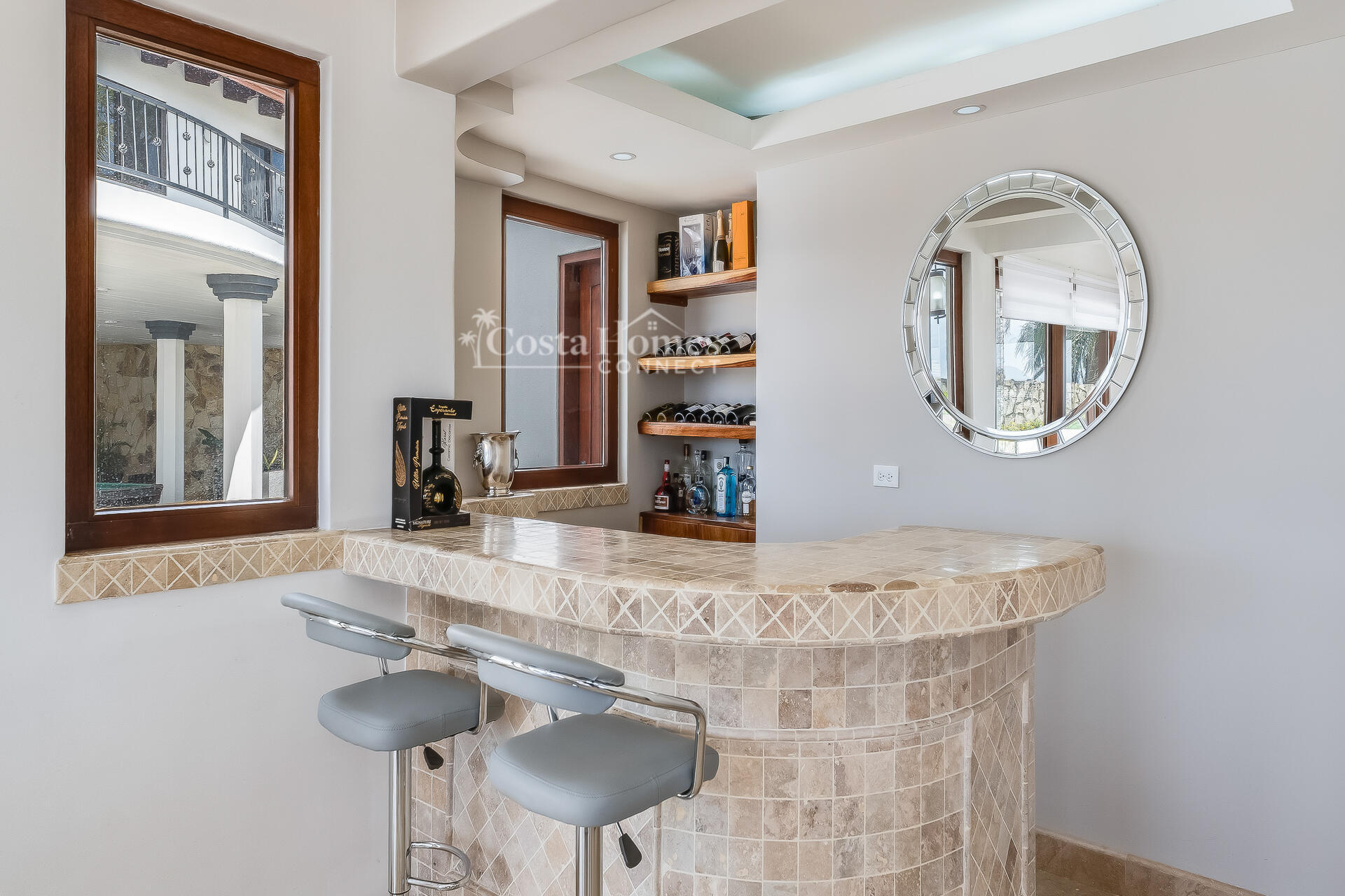 This imposing property with views of the Pacific Ocean and the Guanacaste Forest has 8 spacious bedrooms, features two vaulted ceiling living rooms (embellished with Talley wood paneling (this same wood was used for the sliding doors, windows, and balconies and terraces), 4 full baths and one half bath. The travertine floors add the perfect touch to the design of this magnificent architectural masterpiece. If you must conduct business, do so in the privacy of a large office away from interruptions.