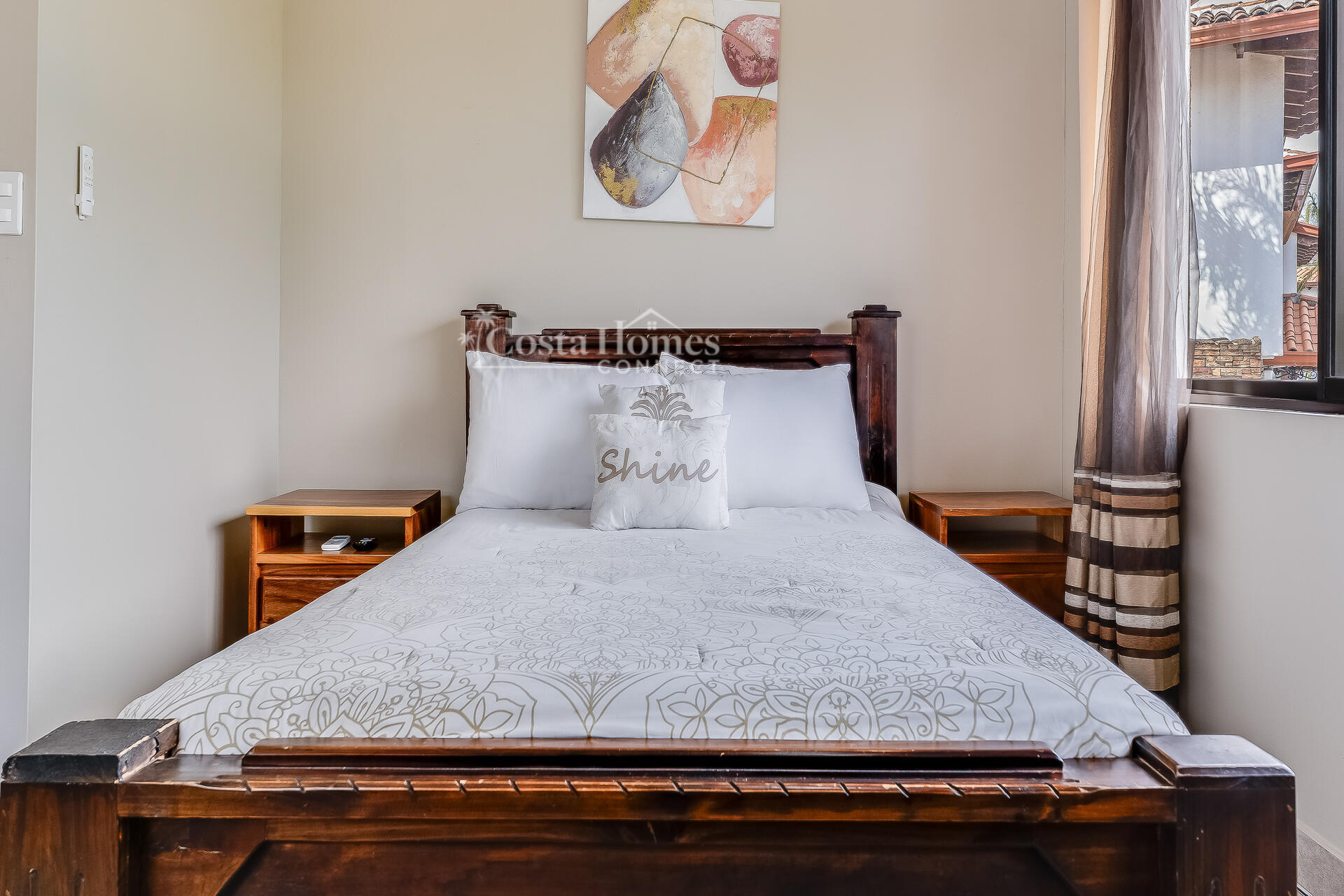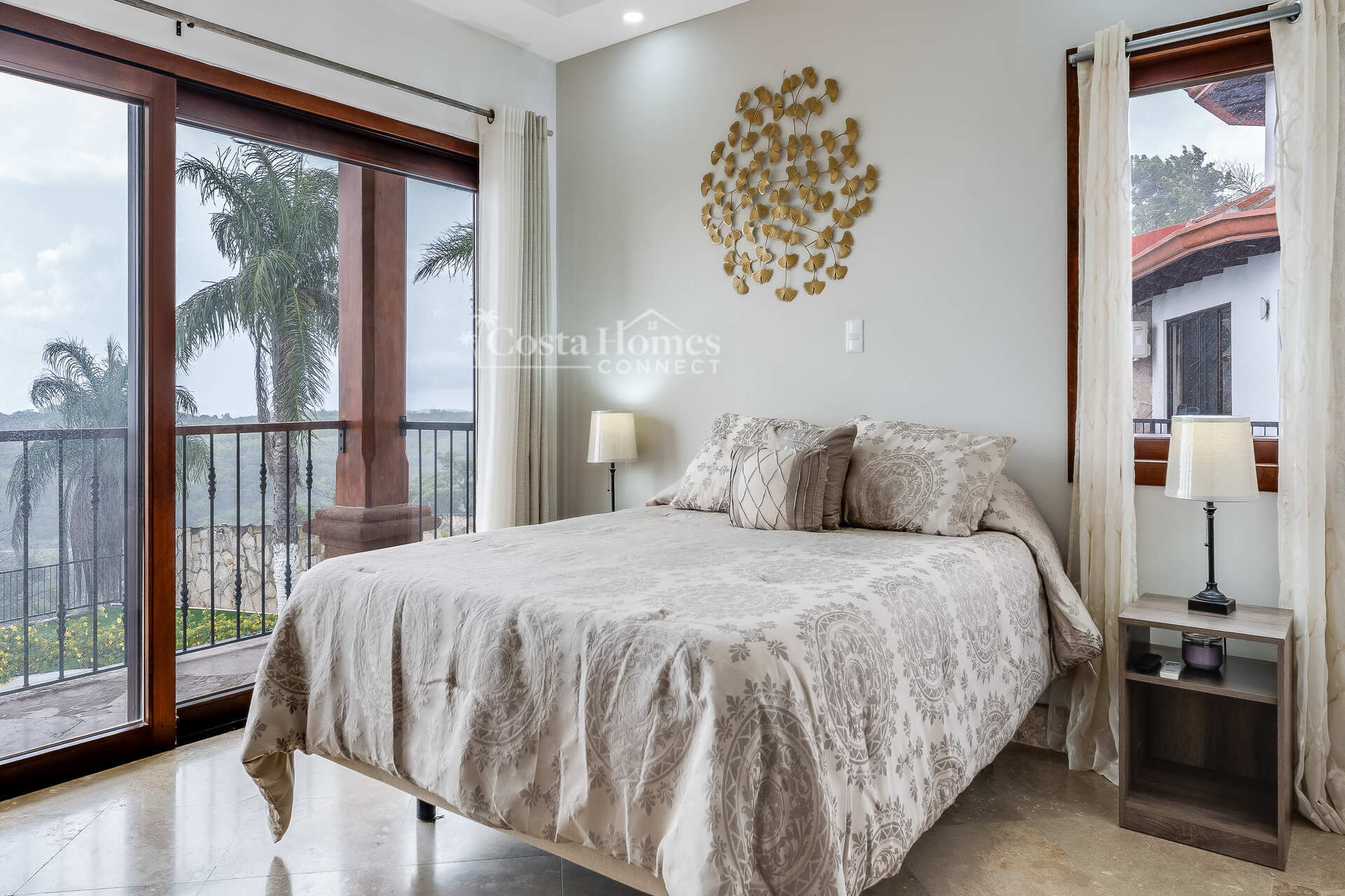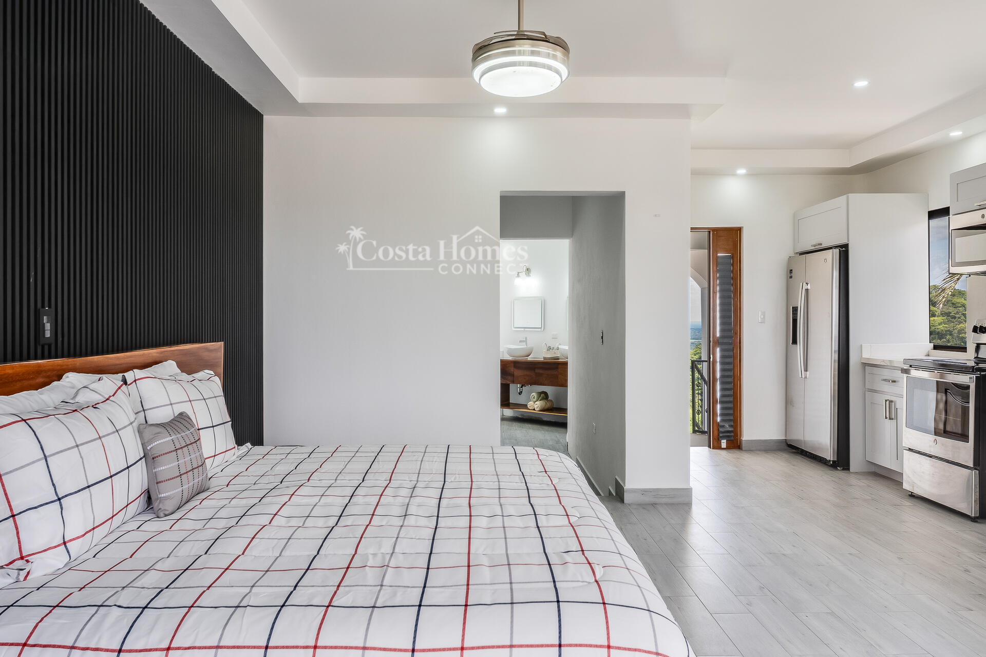 The studio apartment offers two wonderful views as you ascend the staircase, from beautiful arches or from its incredible terrace, where you can enjoy the landscape. Prepare your meals in the spectacular kitchen equipped with luxury granite finishes and have breakfast in the Guanacaste wood dining room adorned with a beautiful chandelier that illuminates a beautiful dome. Relax in a king-size bed, take a shower in a luxurious bathroom with a walk-in shower, or soak in the bathtub overlooking the forest. Beautiful Guanacaste wood furniture adorns the double sinks.
